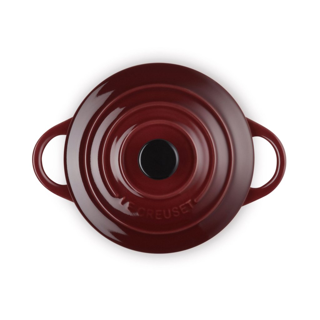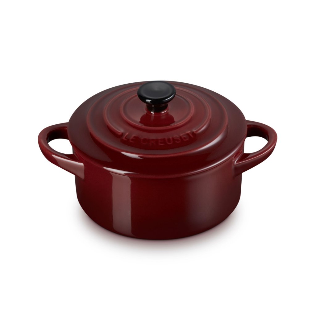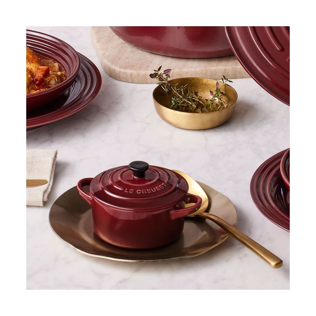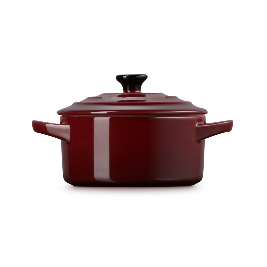 - Micul vas ceramic oală de gătit Le Creuset în nuanța GARNET este ideal pentru servirea porțiilor individuale, a sosurilor sau a mâncărurilor mai mici.