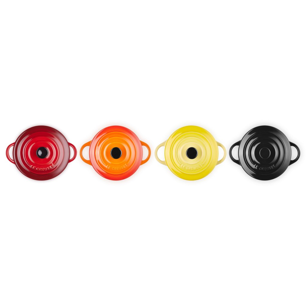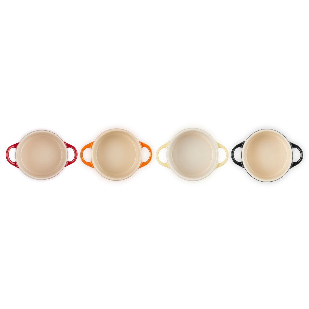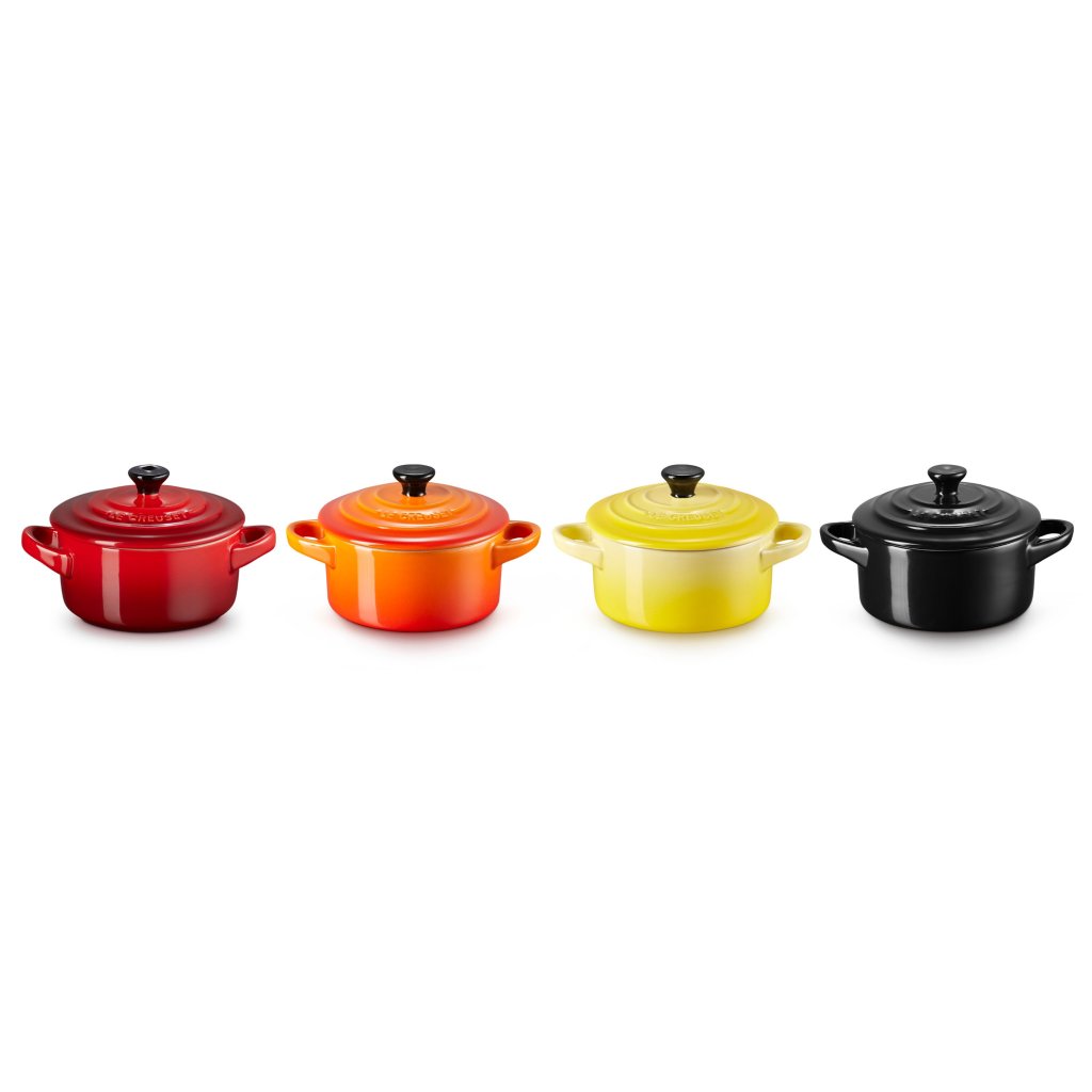 - Micul vas ceramic oală de gătit Le Creuset în 4 nuanțe de culoare este ideal pentru servirea porțiilor individuale, a sosurilor sau a unor preparate mai mici.