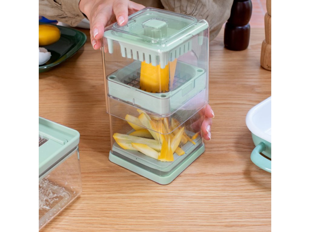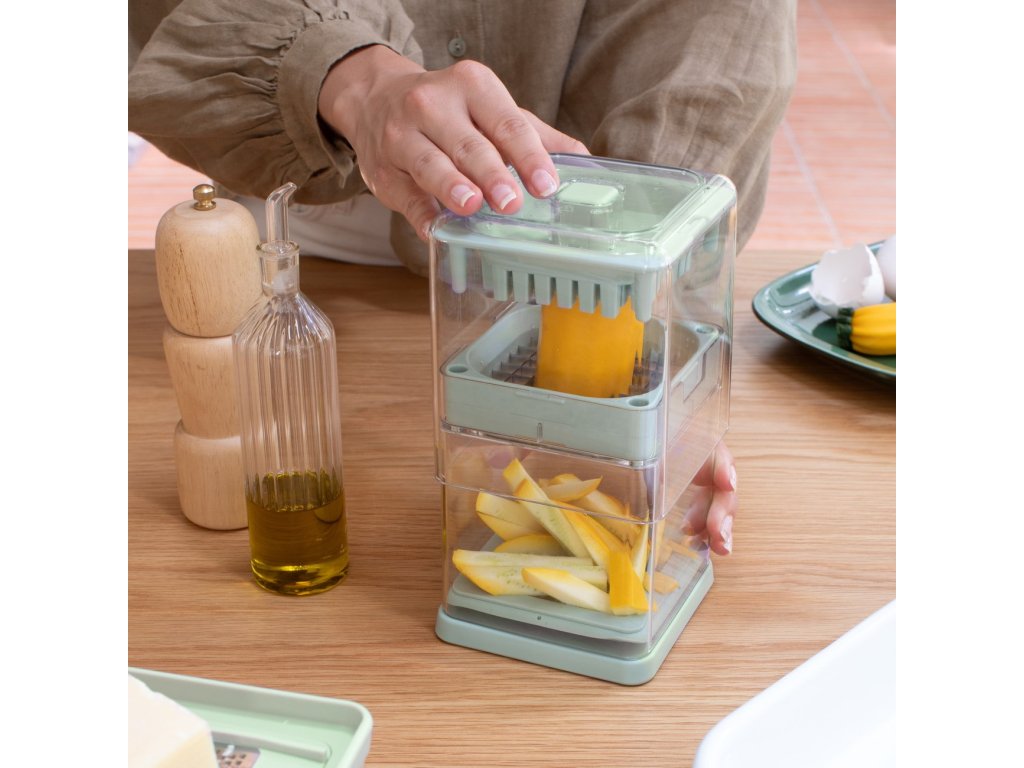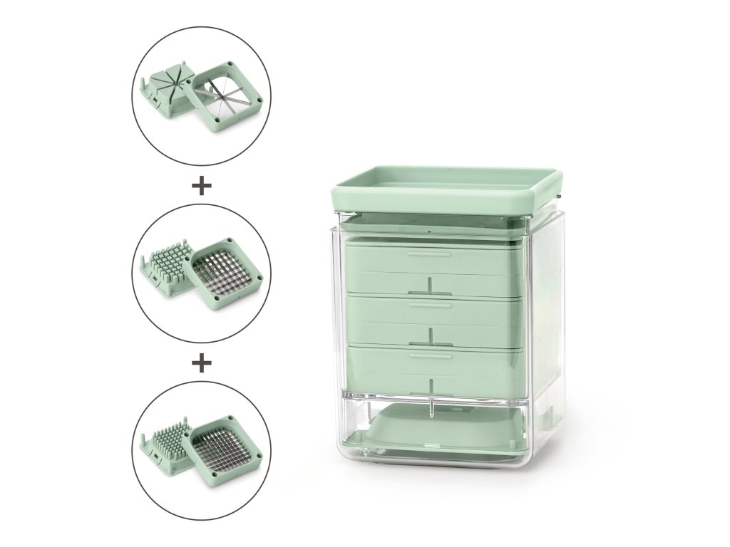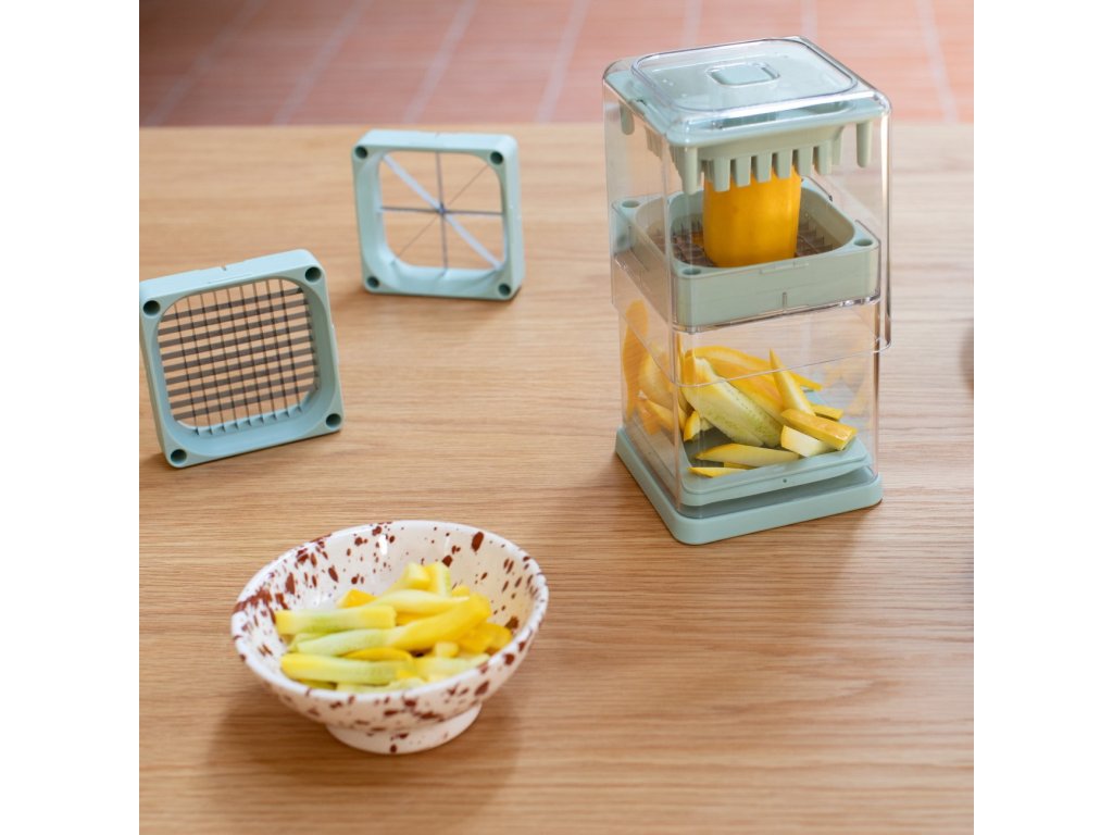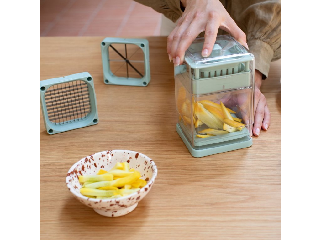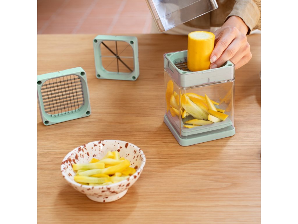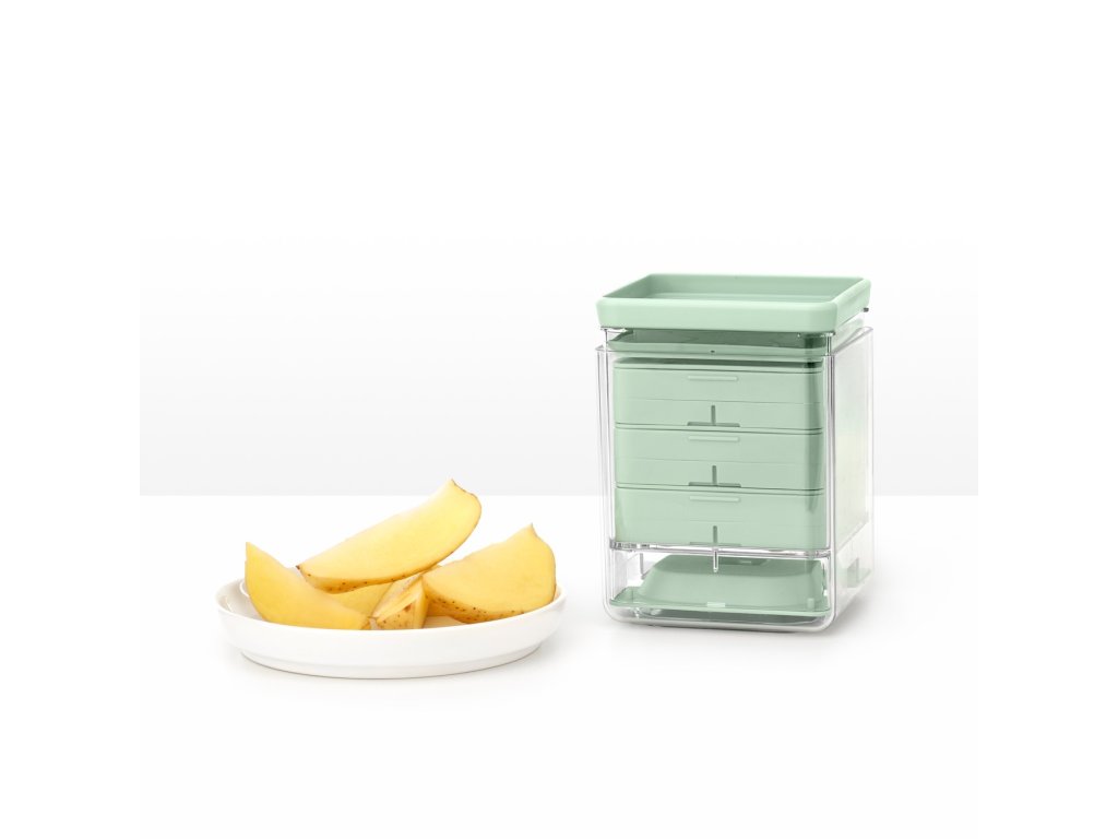 - Feliator de cartofi Brabantia TASTY+ din jad verde care permite tăierea ușoară și rapidă a legumelor în cuburi sau felii