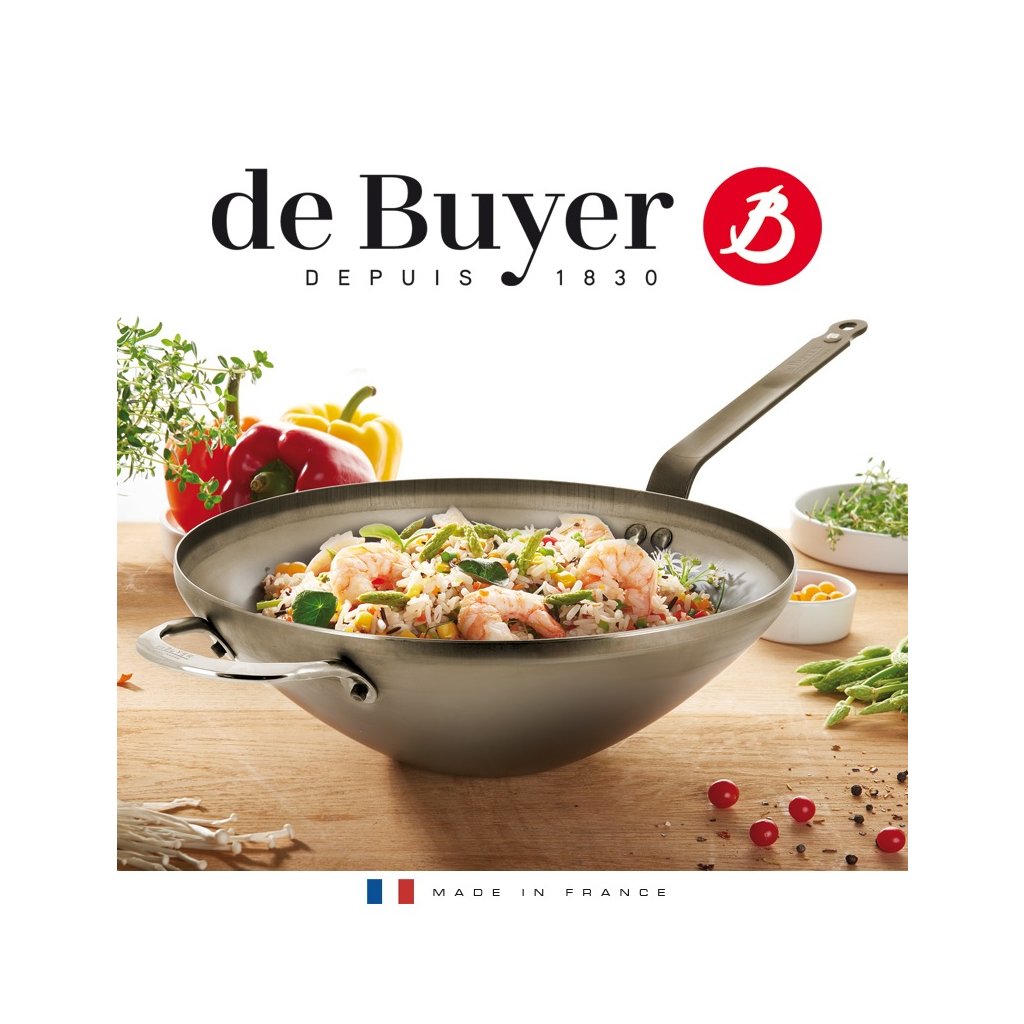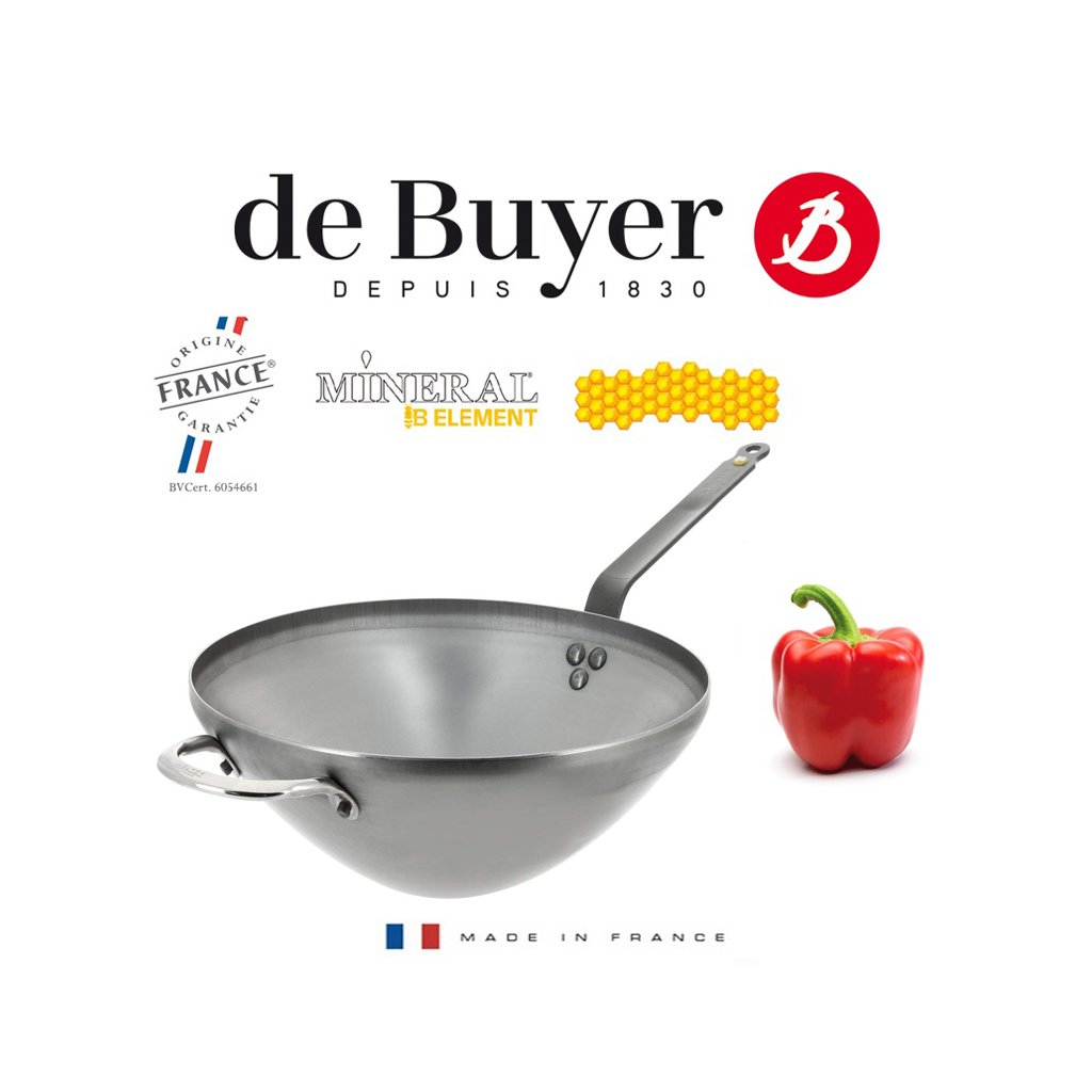 Wok MINERAL B 32 cm, cu fund plat, oțel, de Buyer