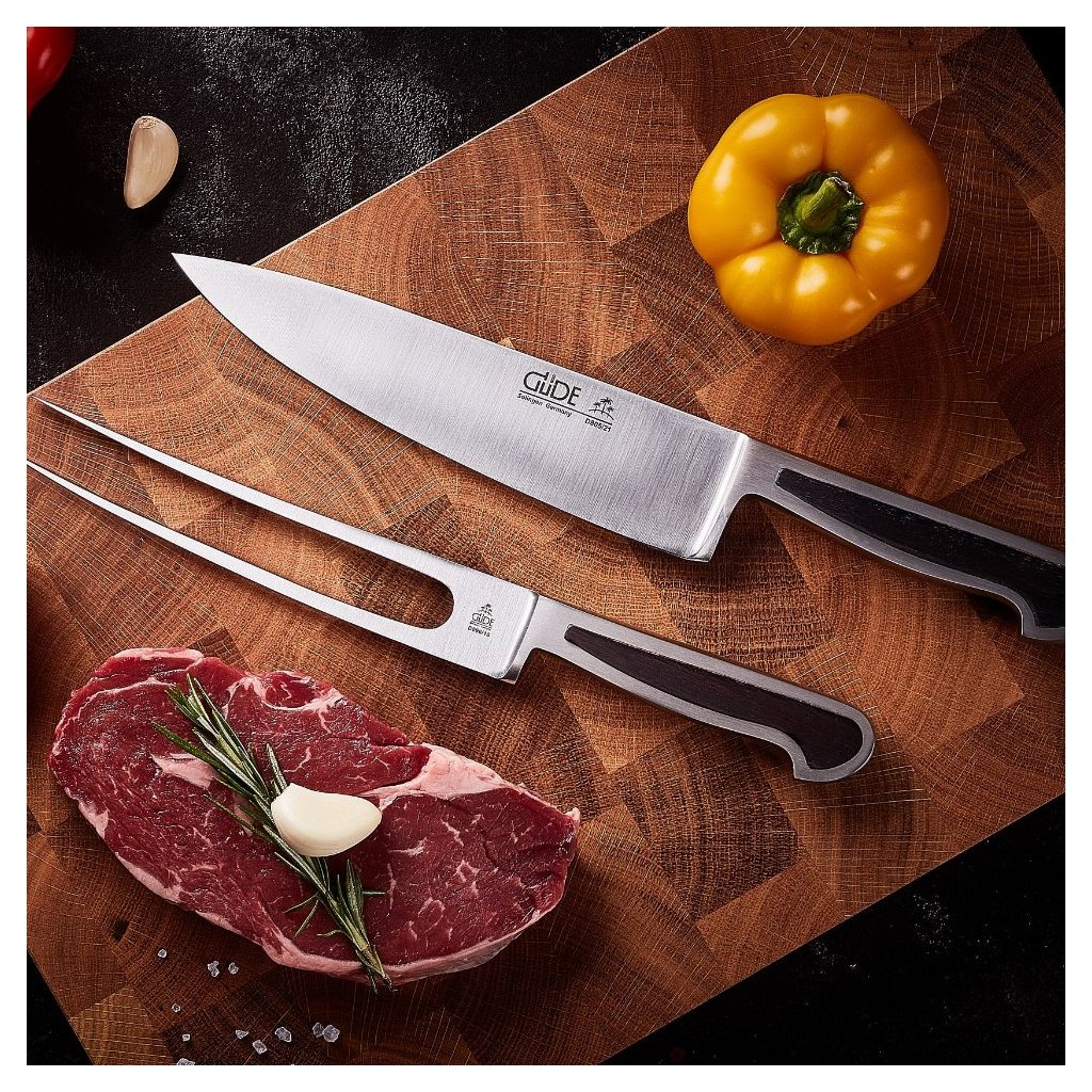 - reduce la minimum pierderea sucurilor atunci când se taie bucăți mai mari de carne prăjită sau la grătar, perfect pentru servirea cărnii
