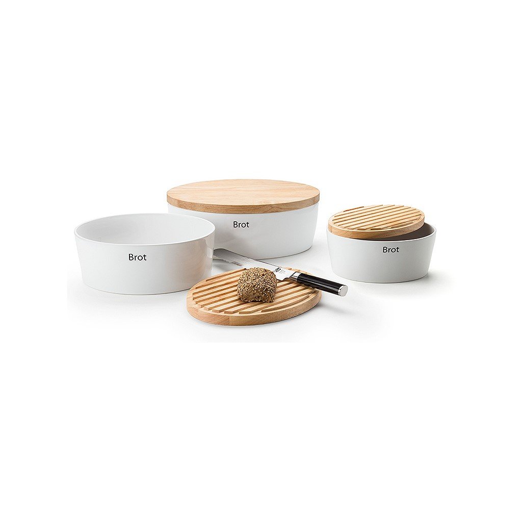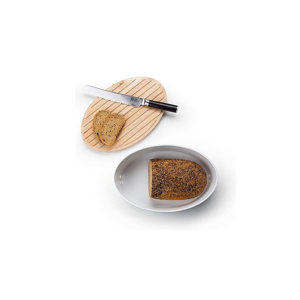 Cutie de pâine din ceramică cu capac din lemn de cauciuc, care servește și ca tocător cu două fețe. Este plat pe o parte și cu o formă de feston pe cealaltă parte. Cutia de pâine are găuri pentru ventilație. Ceramica este smălțuită și se poate spăla în mașina de spălat vase. Capacul din lemn nu poate fi spălat în mașina de spălat vase.
