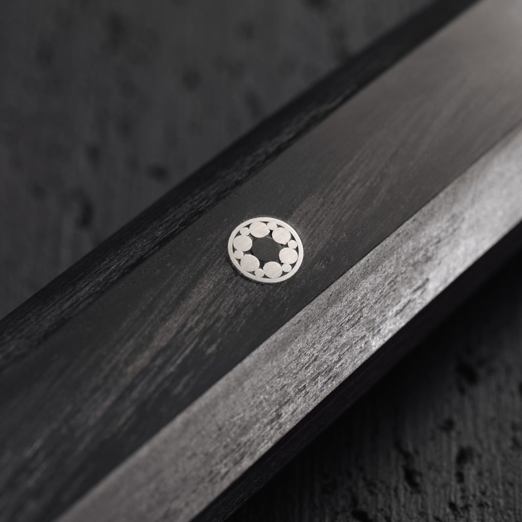 Lama este fabricată din oțel cromat dublu călit FC61. Pentru a obține proprietăți și mai bune, a fost utilizat un proces unic de călire CRYODUR®, în timpul căruia oțelul este înghețat la -196°C. Materialul rezultat se mândrește cu o duritate excepțională. Procesul tradițional de ascuțire manuală Honbazuke este dezvoltat prin sute de ani de muncă a maeștrilor fierari. Este un proces de ascuțire în mai multe etape, în care cuțitul este mai întâi ascuțit cu ajutorul unei pietre de șlefuit verticale și orizontale rotative, iar la final lama este lustruită cu o bandă de ascuțire din piele. Șlefuirea simetrică și tăișul Katana asigură o penetrare ușoară prin materiile prime. Bolterul decupat previne alunecarea degetelor pe lamă.