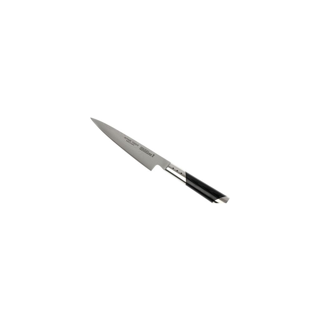 Cuțitul japonez mic SHOTOH , extrem de ascuțit, cu lama sa scurtă, subțire, dar durabilă, este ideal pentru curățarea, decojirea și felierea legumelor și fructelor . Datorită lamei sale neobișnuit de fine, acest cuțit este, de asemenea, unealta perfectă pentru a înfige carnea la frigare. Lama scurtă și mânerul confortabil permit tăieturi ghidate cu precizie. SHOTOH este unul dintre cele mai populare și comune cuțite din Japonia.