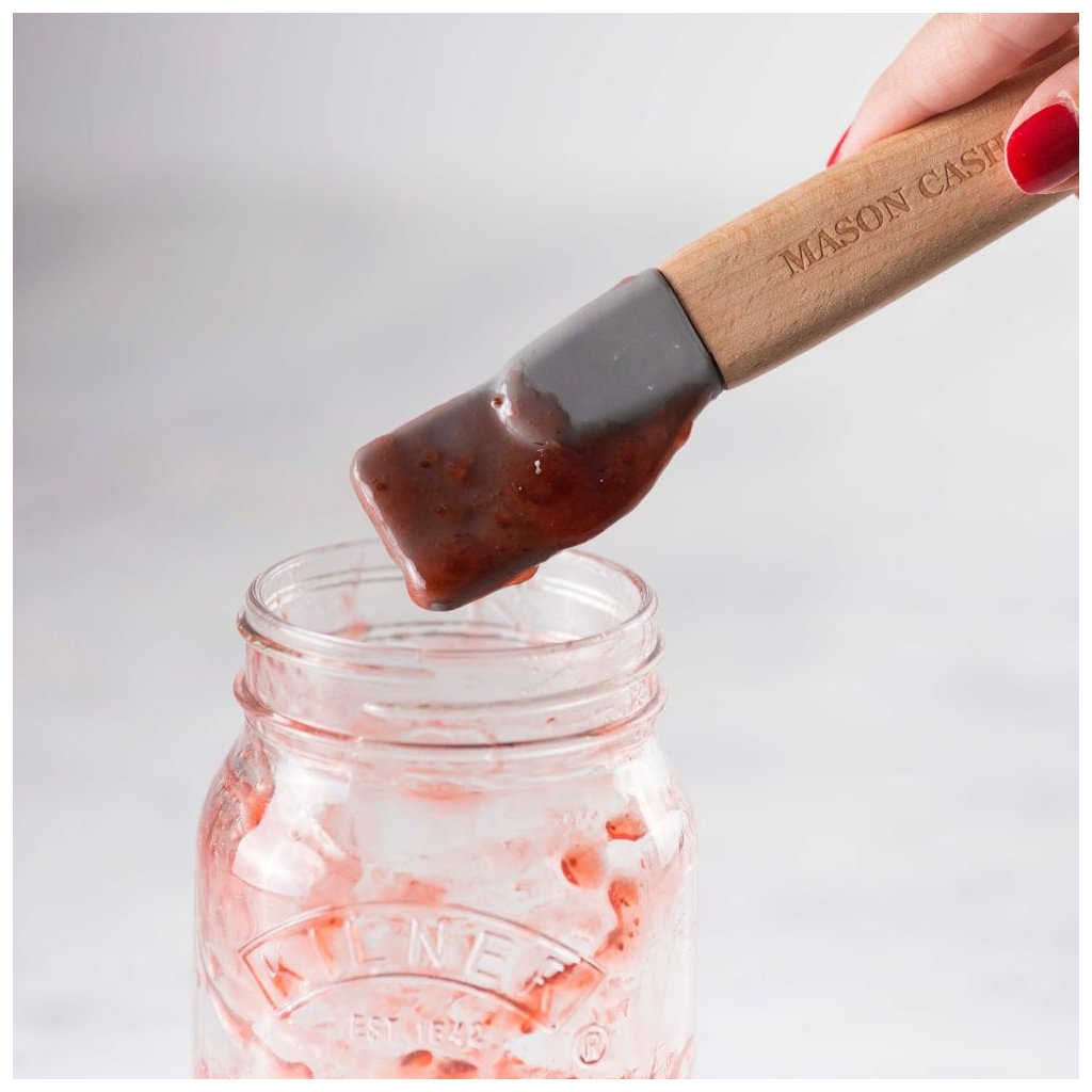 - la capătul mânerului se află o racletă din silicon cu o spatulă, de exemplu pentru tăierea gemului și răzuirea temeinică pahar de apă