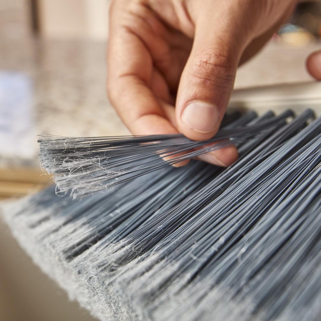 - Perii fini, cu formă specială și capete zdrențuite, captează eficient praful, firimiturile și murdăria fină de pe podea.