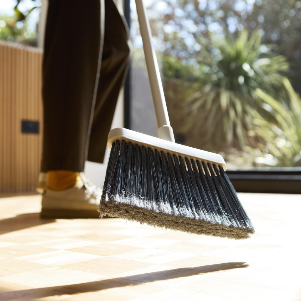 - Mânerul antiderapant asigură o prindere fermă și confortabilă la măturat și ajută la îmbunătățirea controlului asupra mișcării măturii.