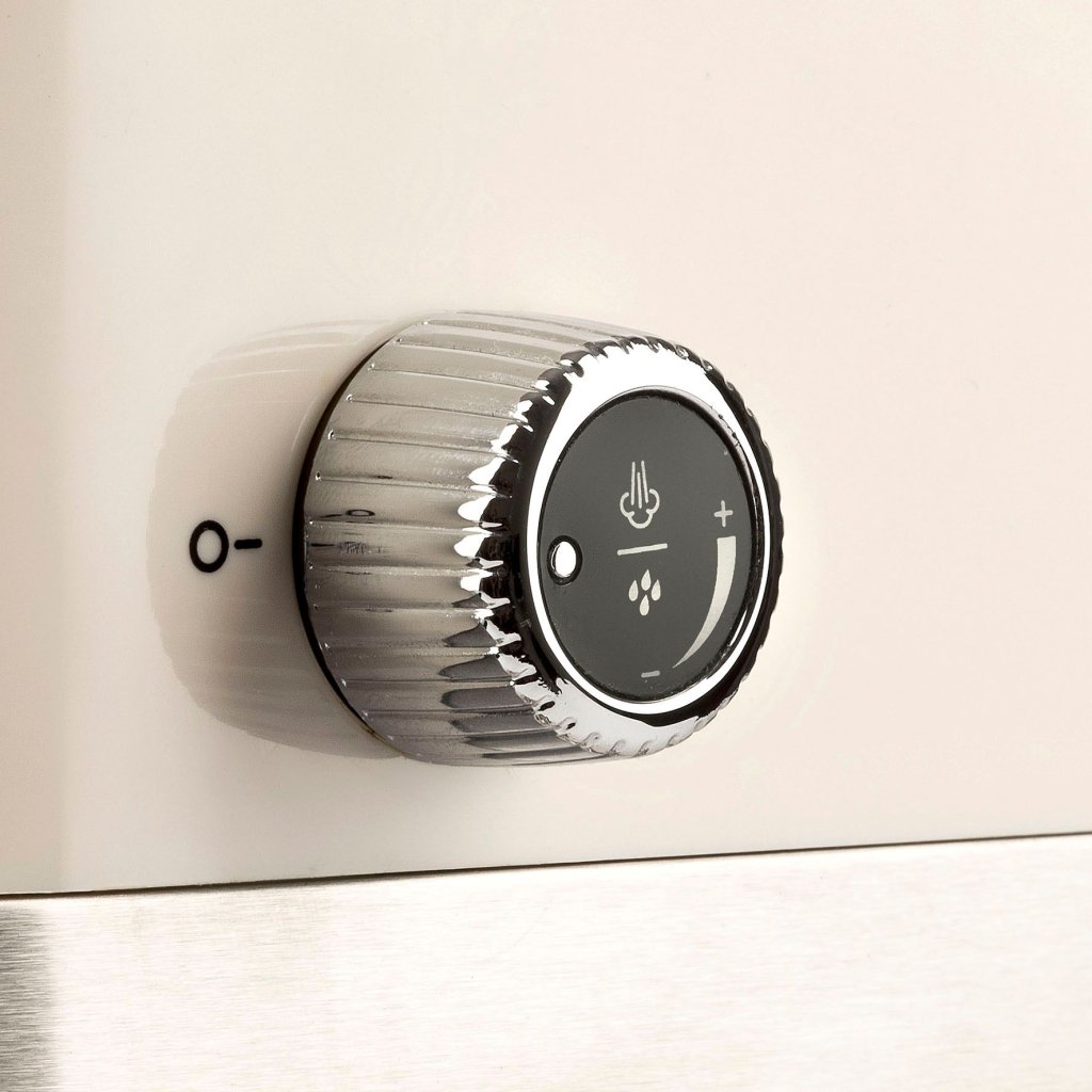 - Detaliile oțel și aspectul retro în alb conferă aparatului de cafea un aspect elegant pentru orice bucătărie