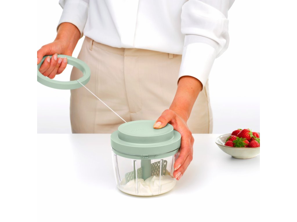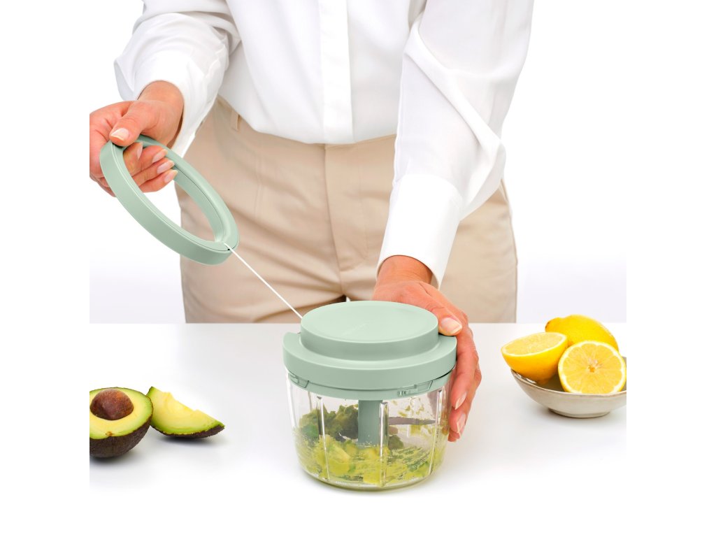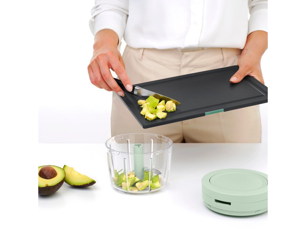 - manual cuțit de topor Brabantia TASTY+ este ajutorul ideal pentru tocarea ușoară și rapidă a cepei, legumelor, nucilor sau ierburilor aromatice fără a folosi un cuțit