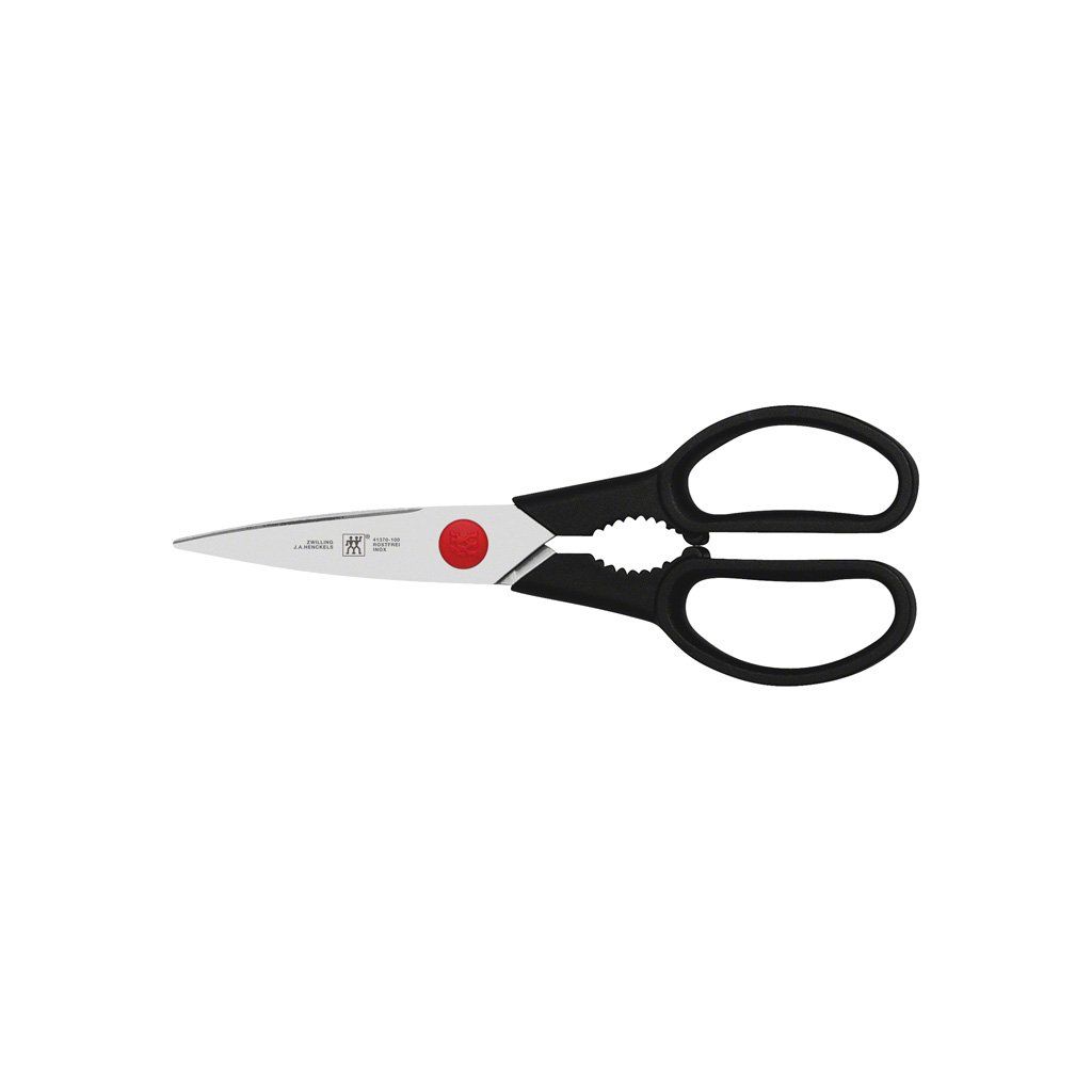 Foarfeca multifuncțională TWIN® L de la compania germană ZWILLING J. A. Henckels fabricată din oțel special este prevăzută cu un mâner sintetic incasabil, cu fibră de sticlă, de culoare neagră. Precizia șurubului central permite închiderea perfectă și ascuțirea ușoară a lamei.