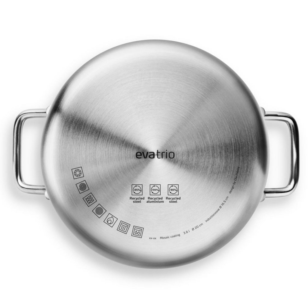 - Aragazul oțel inoxidabil oală de gătit de 3,6 litri combină designul tradițional EVA TRIO cu materiale inovatoare pentru o gătire îmbunătățită.