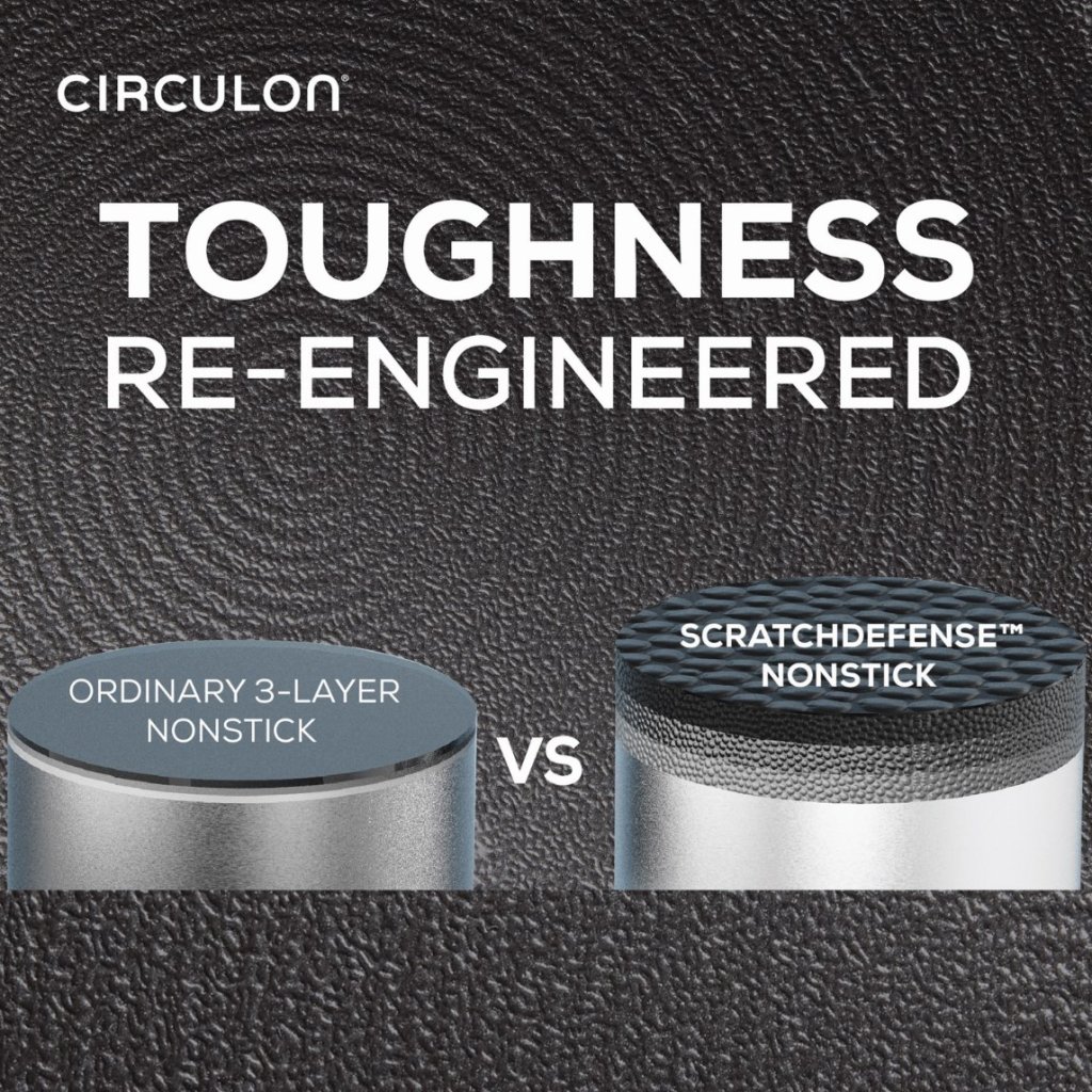 - antiaderență inovatoare oală de gătit Circulon SCRATCHDEFENSE A1 oferă rezistență revoluționară la zgârieturi și durată de viață extrem de lungă