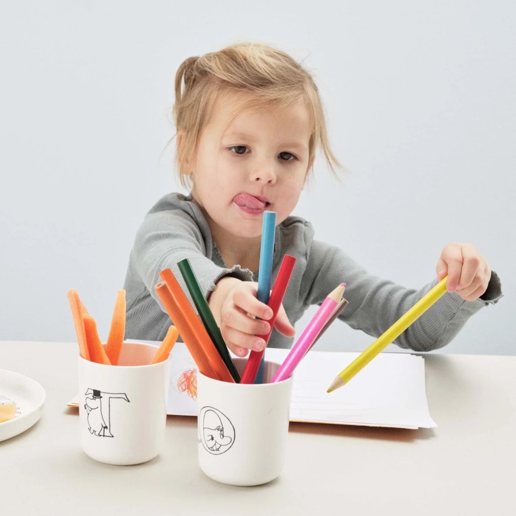 - designul colorat cu litere jucăușe și motive din opera lui Tove Jansson încurajează curiozitatea și distracția copiilor în învățarea alfabetului