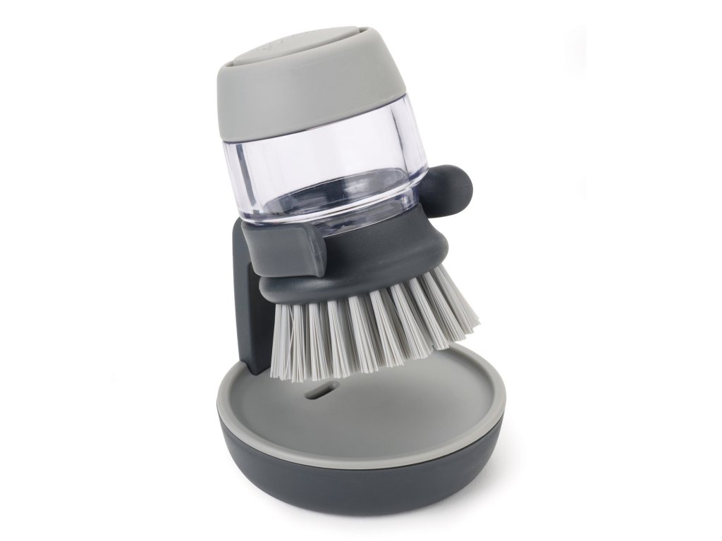Perie de vase cu dozator de săpun de vase PALM SCRUB, gri, Joseph Joseph