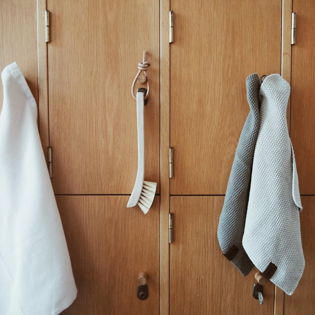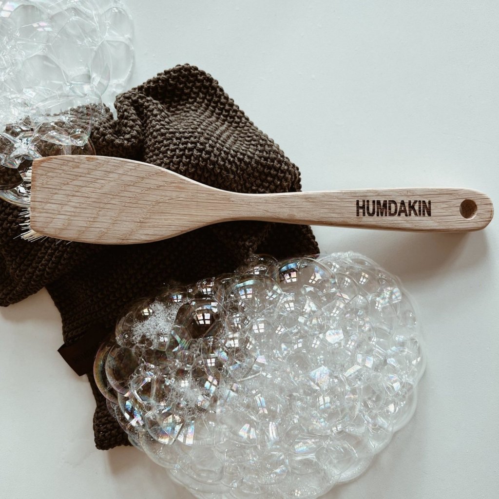 - perie de vase fabricat din lemn de stejar închis la culoare și fibre vegetale Tampico 100%, care provin din planta Agave lechuguilla