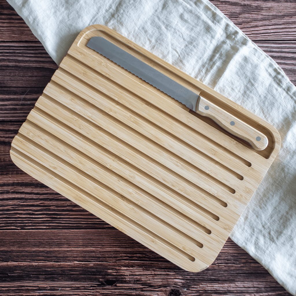 - Placa de pâine bambus și set de cuțite Pebbly oferă o soluție elegantă și practică pentru felierea pâinii de zi cu zi, fără mizerie inutilă.