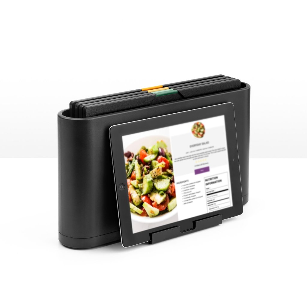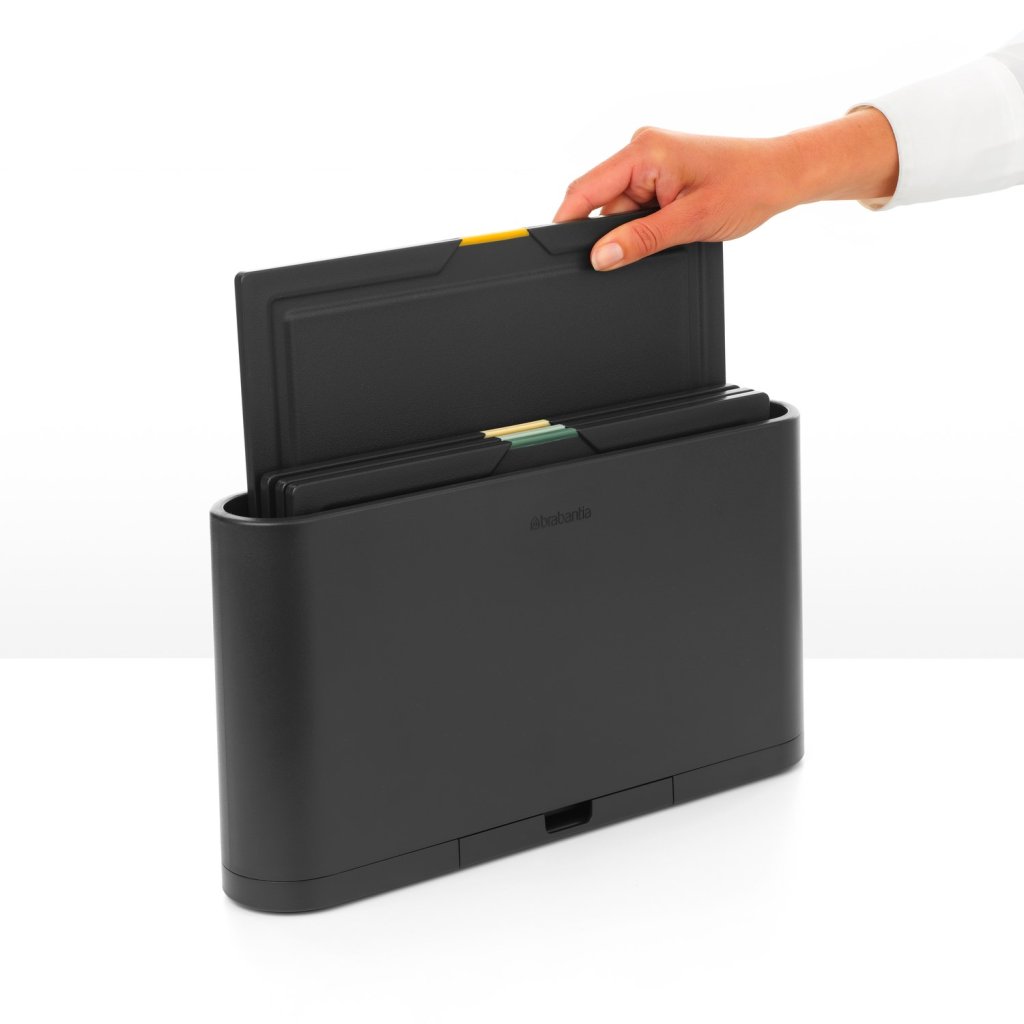 - Setul de patru tocătoare Brabantia TASTY+ cu husă de depozitare oferă o soluție practică pentru tăierea igienică și ordonată a alimentelor