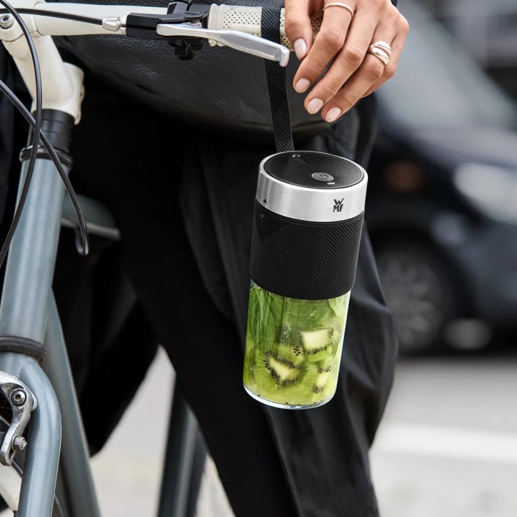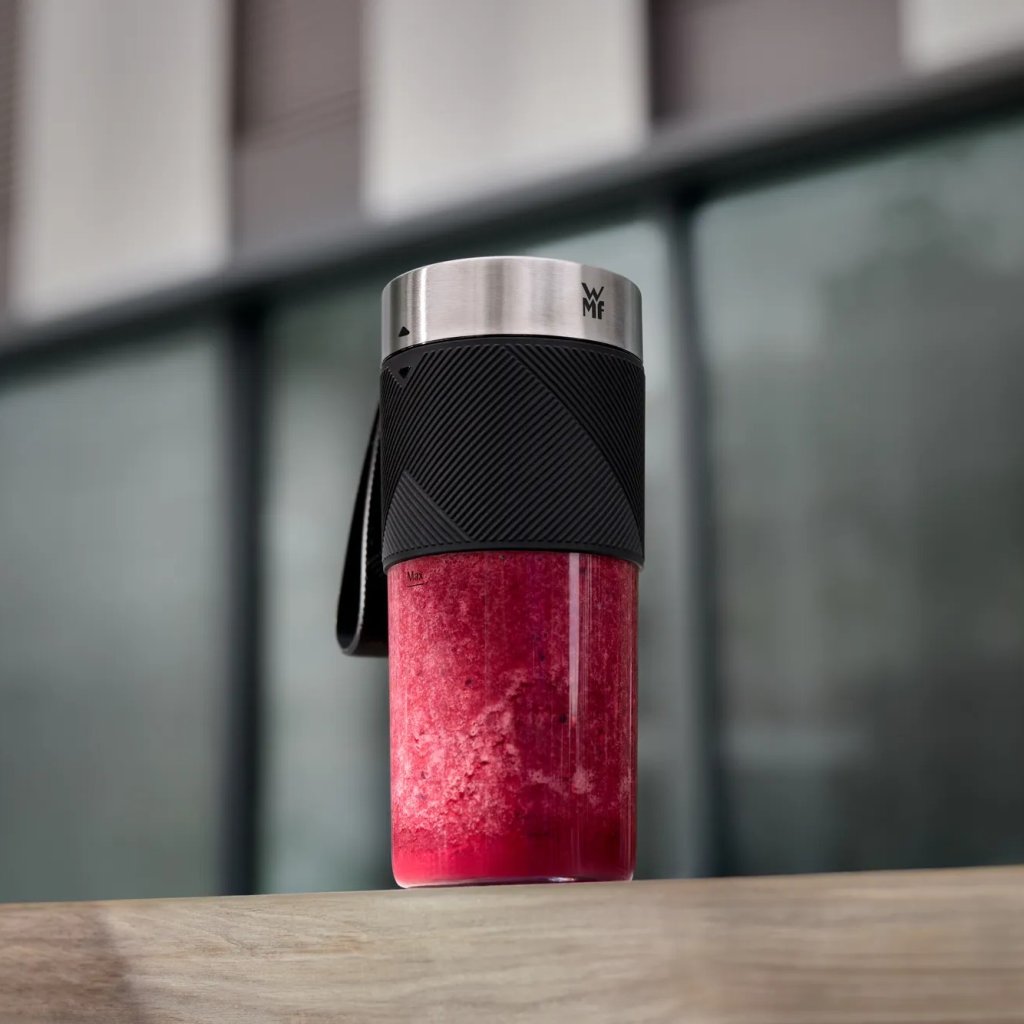 - Blenderul de călătorie WMF KITCHENMINIS este un instrument practic conceput pentru prepararea de smoothie-uri proaspete oriunde, în deplasare.