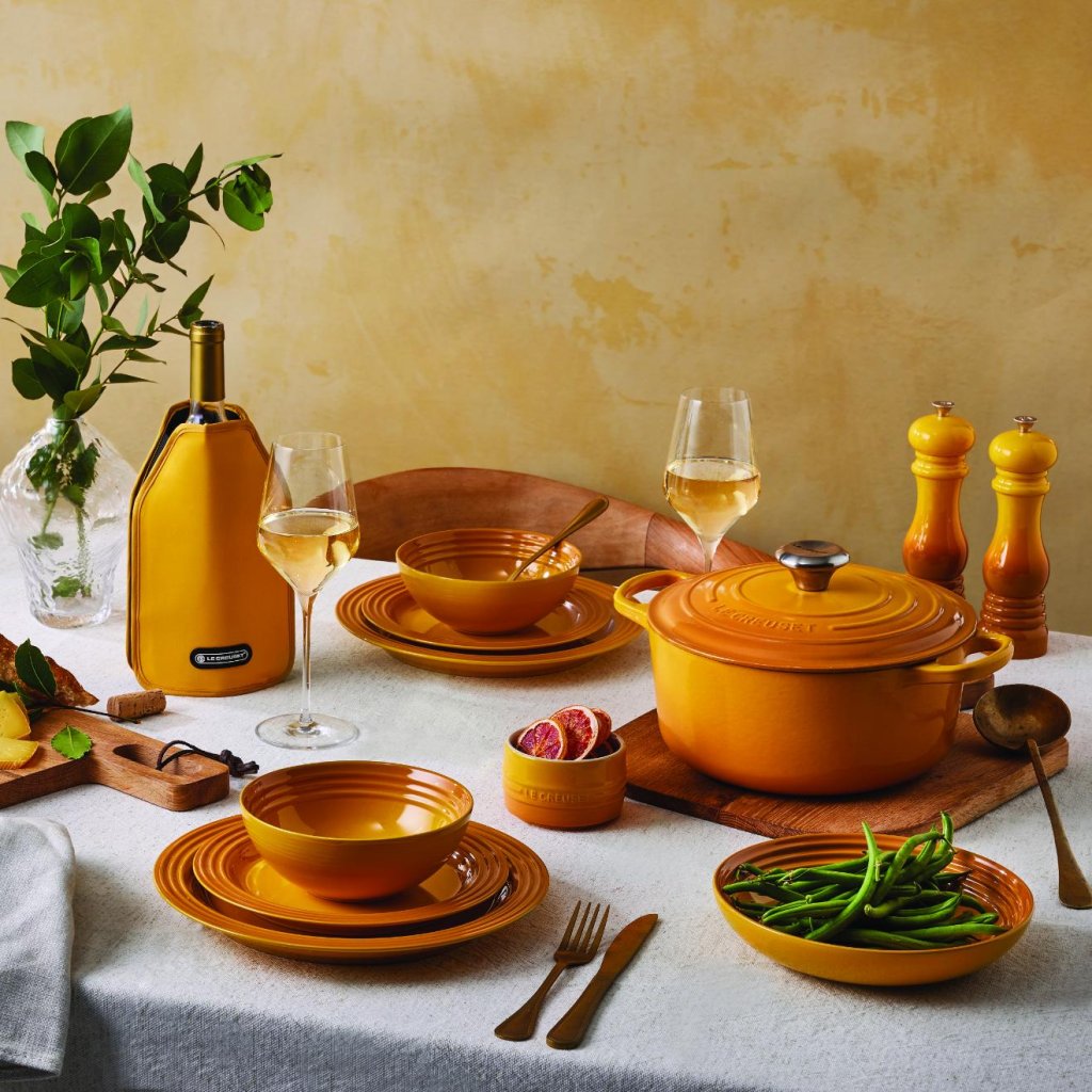 - Culoarea NECTAR, inspirată de miere și soarele de vară, aduce căldură, optimism și eleganță subtilă interiorului și se potrivește perfect cu alte articole de masă Le Creuset în aceeași nuanță.