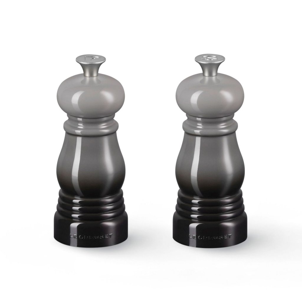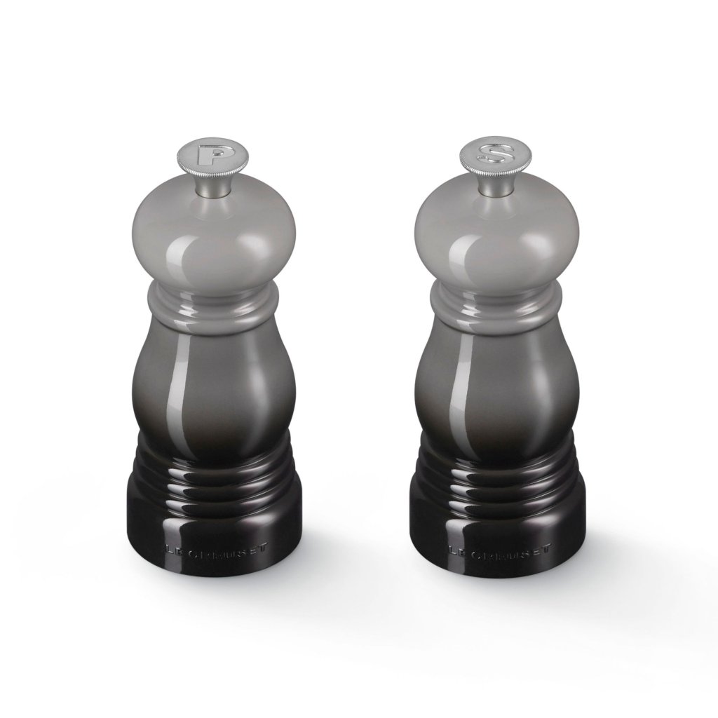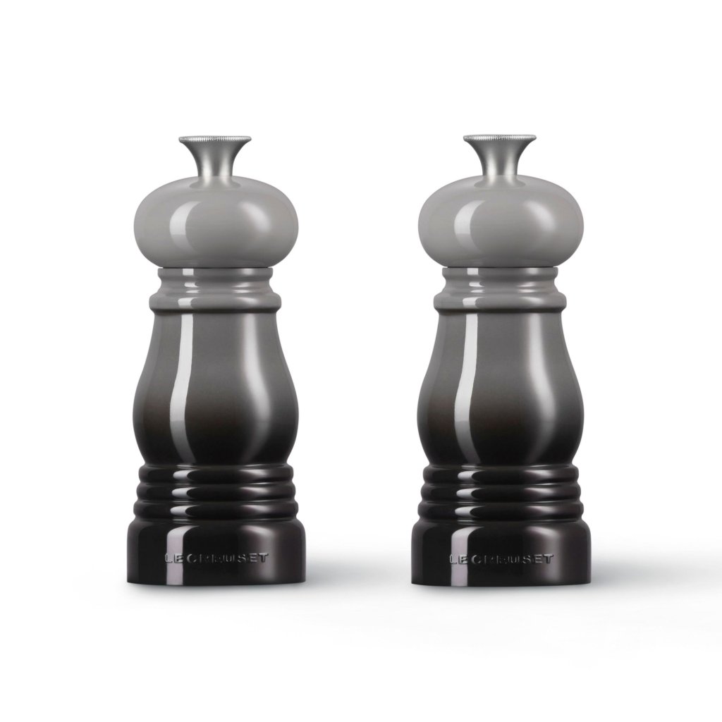- Râșnițele de sare și piper mini set de Le Creuset în nuanța FLINT aduc în bucătărie stil, funcționalitate și bucuria condimentelor de zi cu zi.