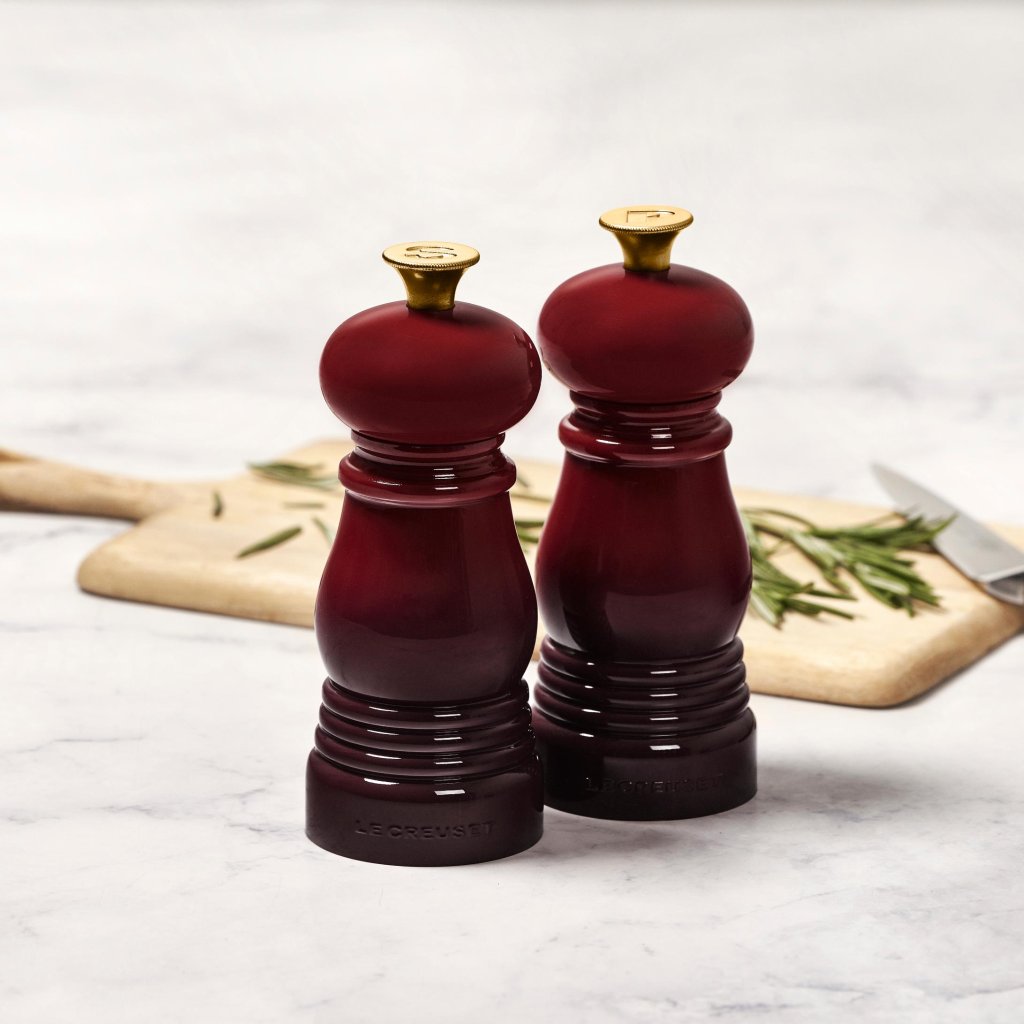 - Râșnițele de sare și piper mini set de Le Creuset în nuanța GARNET aduc în bucătărie stil, funcționalitate și bucuria condimentelor de zi cu zi.