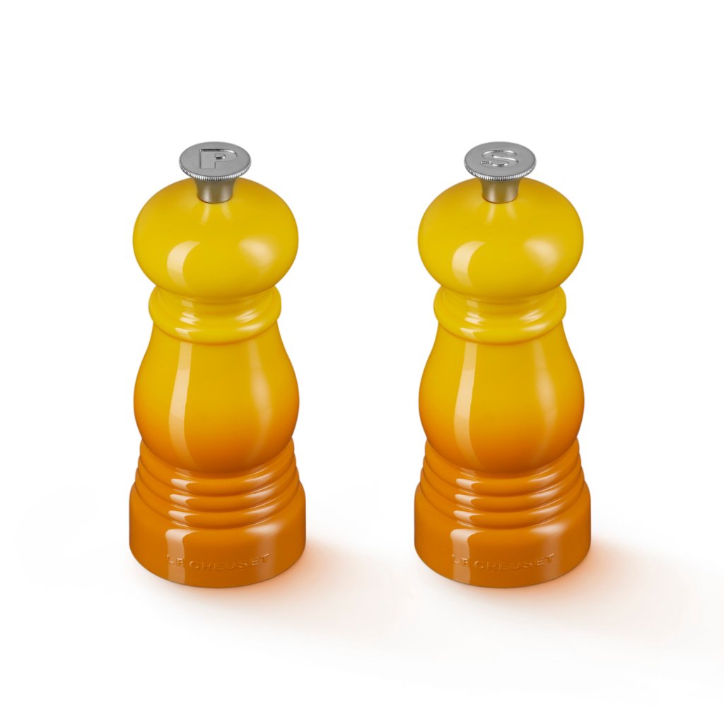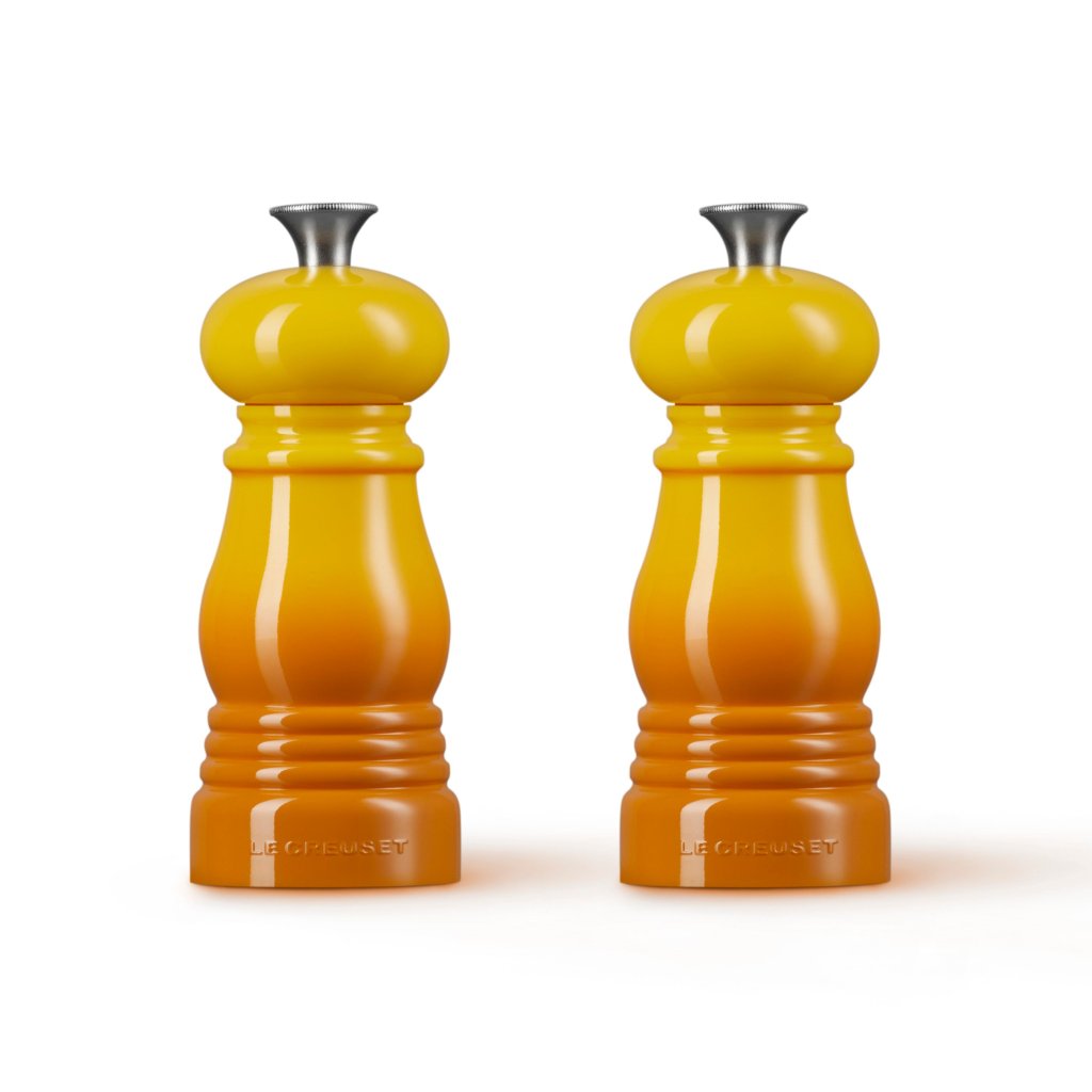 - Râșnițele de sare și piper mini set de Le Creuset în nuanța NECTAR aduc în bucătărie stil, funcționalitate și bucuria condimentelor de zi cu zi.