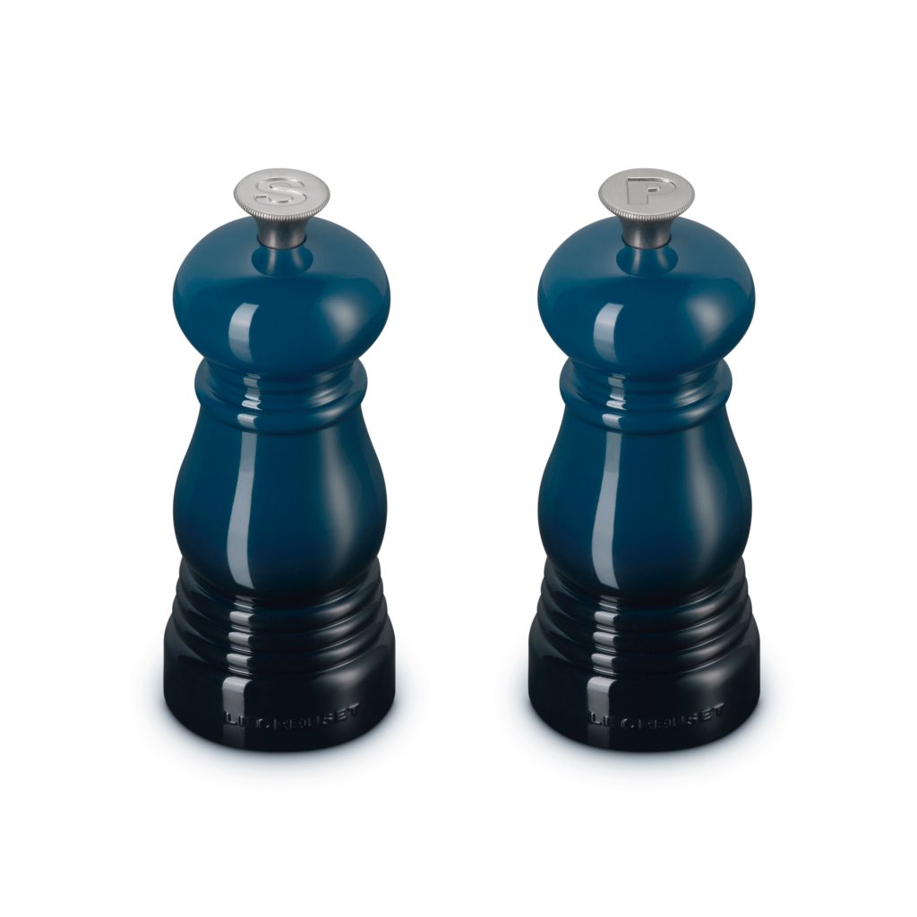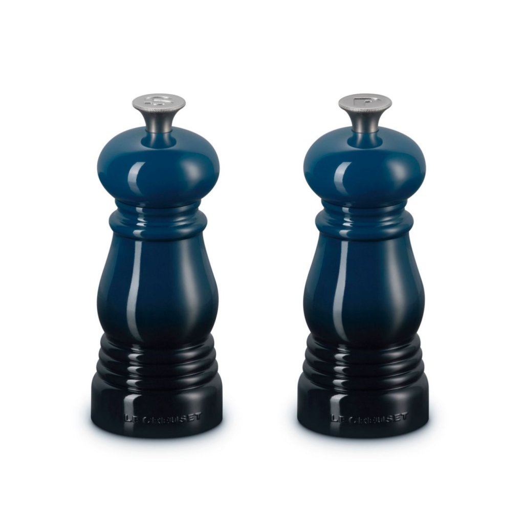 - Râșnițele de sare și piper mini set de Le Creuset în nuanța NUIT aduc în bucătărie stil, funcționalitate și bucuria condimentelor de zi cu zi.