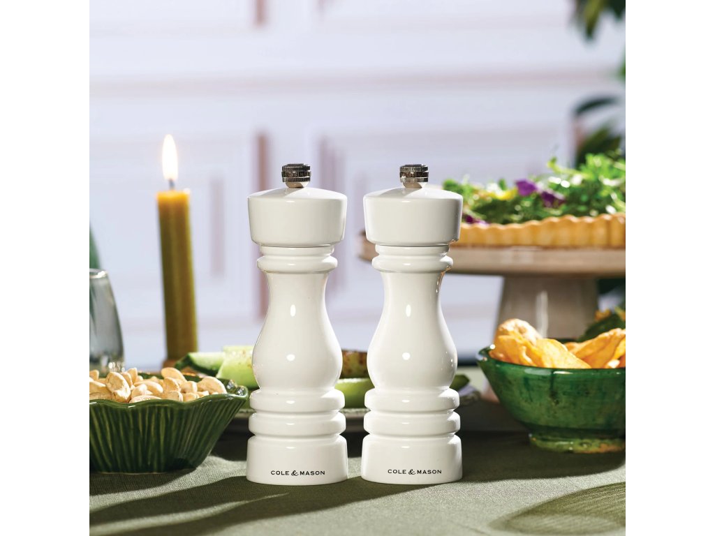 - Setul de râșnițe Cole & Mason LONDON, finisaj lucios alb , aduce o combinație între designul tradițional și eleganța modernă