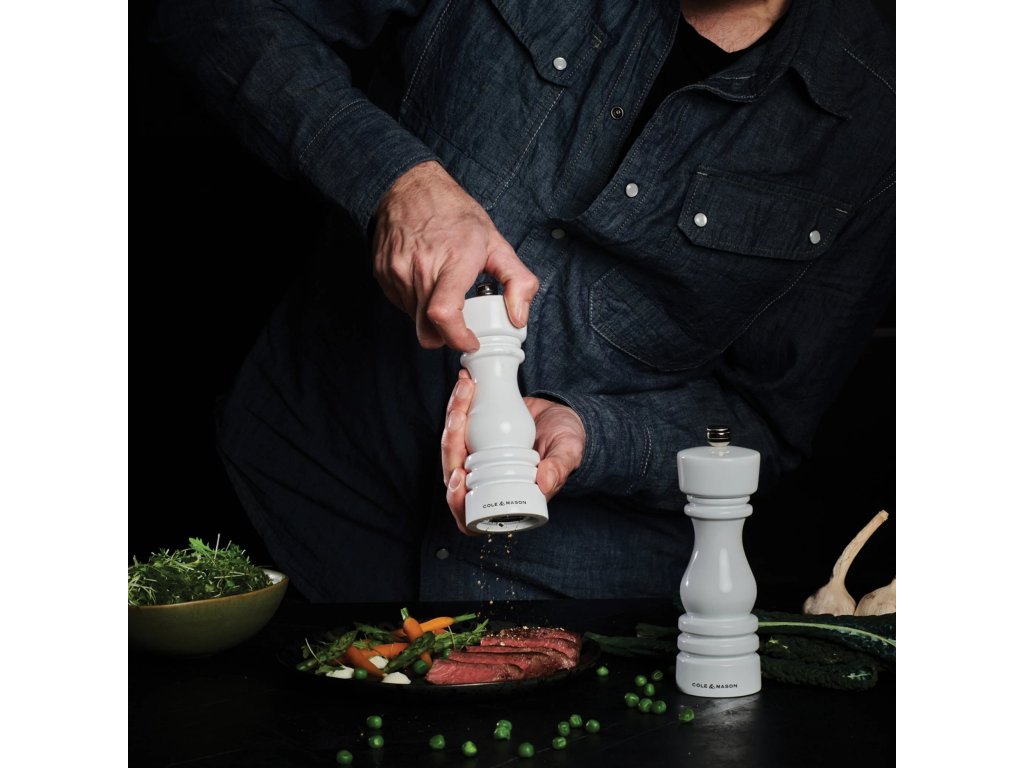 Râșniță pentru sare și piper set LONDON 18 cm, set de 2 buc, alb, lemn, Cole și Mason