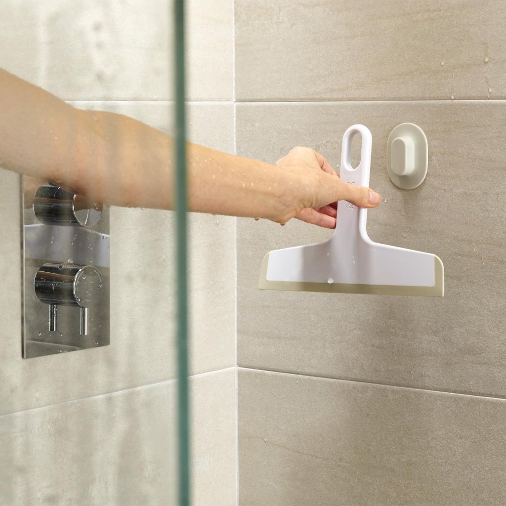 - Utilizarea regulată a racletei ajută la limitarea depunerilor de calcar și menține baia curată pentru mai mult timp.