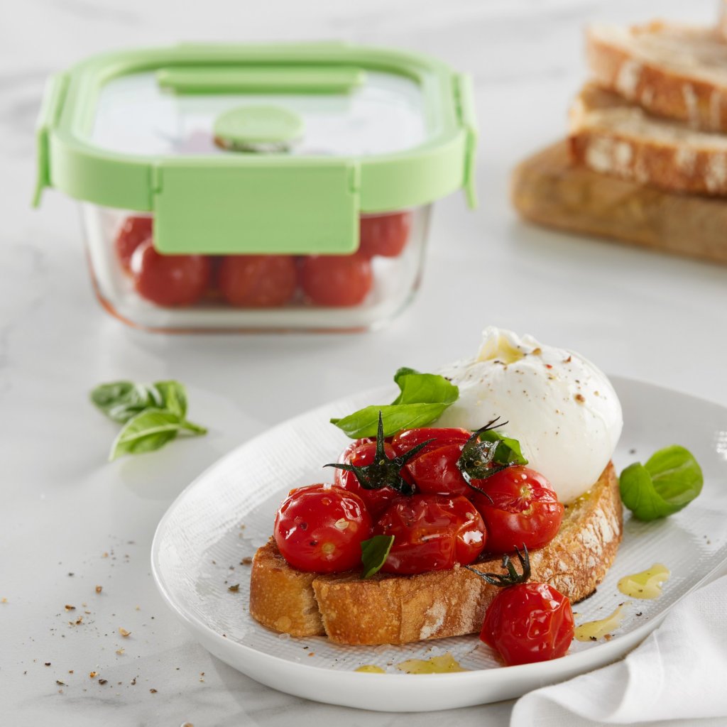 - recipient etanș pentru alimente, fabricat din sticlă borosilicată de cea mai bună calitate, care este extrem de durabilă
