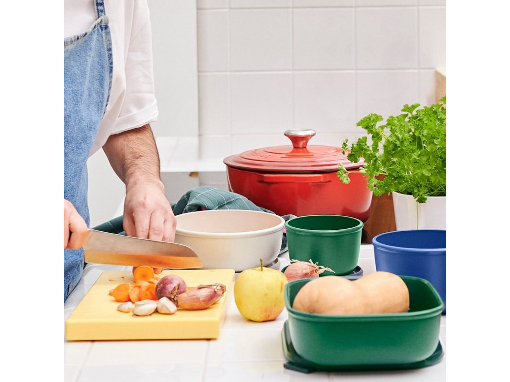 - capacul este flexibil, etanșează ermetic și rezistent la scurgeri, astfel încât alimentele rămân proaspete mai mult timp și nu se scurg