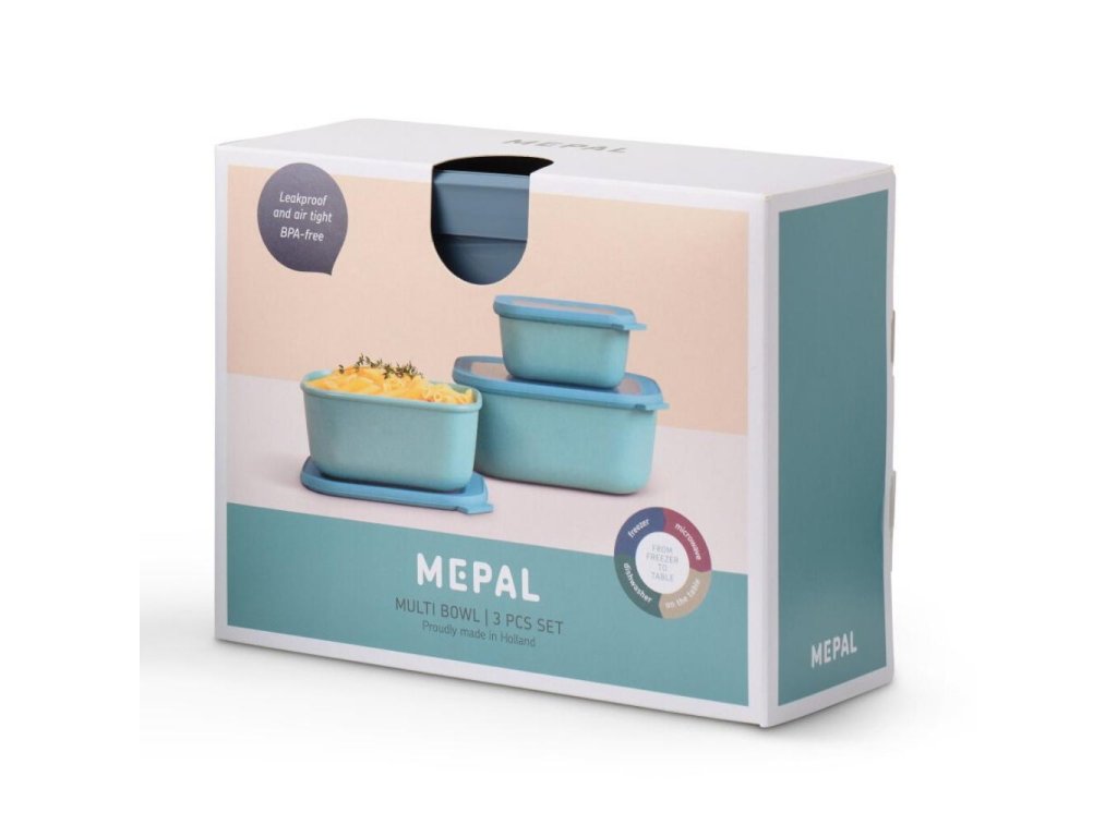 Recipient pentru depozitarea alimentelor CIRQULA RECT XL, set de 3 buc, Nordic albastru, plastic, Mepal