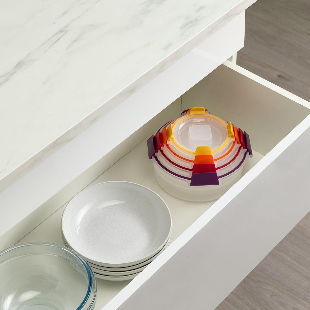 - Setul de recipiente pentru alimente Joseph Joseph NEST LOCK, în varianta rotundă multicoloră, oferă o soluție practică și clară pentru depozitarea alimentelor acasă, la serviciu sau în deplasare.