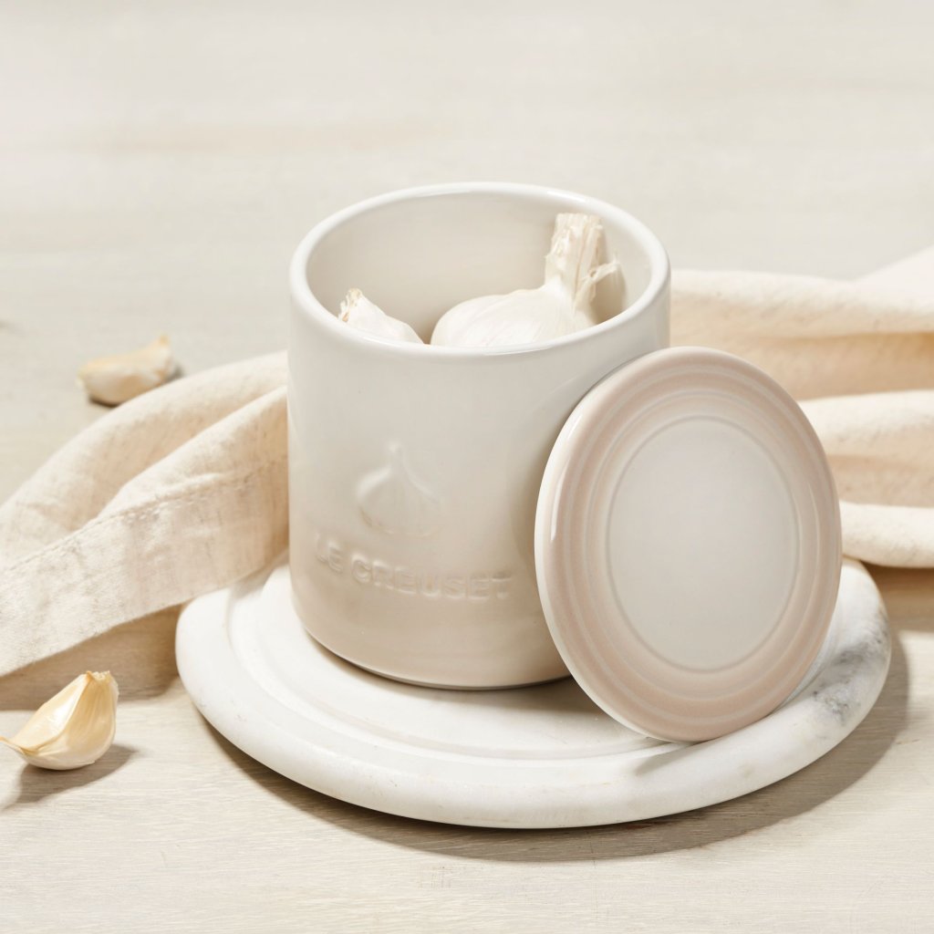 - Ceramica recipient pentru usturoi cu răzătoare Le Creuset în nuanța MERINGUE aduce combinația perfectă de eleganță, caracter practic și calitate în fiecare bucătărie.