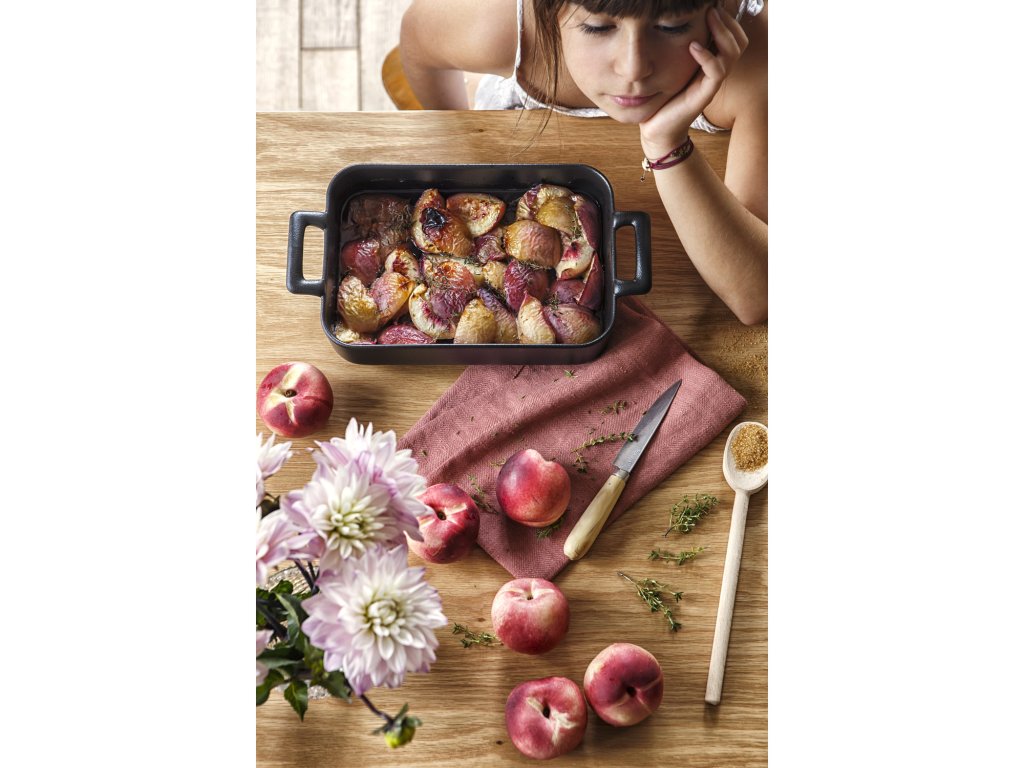 În vasul de copt dreptunghiular de 2,5 l din fontă neagră Belle Cuisine puteți pregăti cartofi la cuptor, lasagna, legume prăjite, fripturi etc. La servire, va fi un decor al mesei dvs. datorită formei sale elegante.