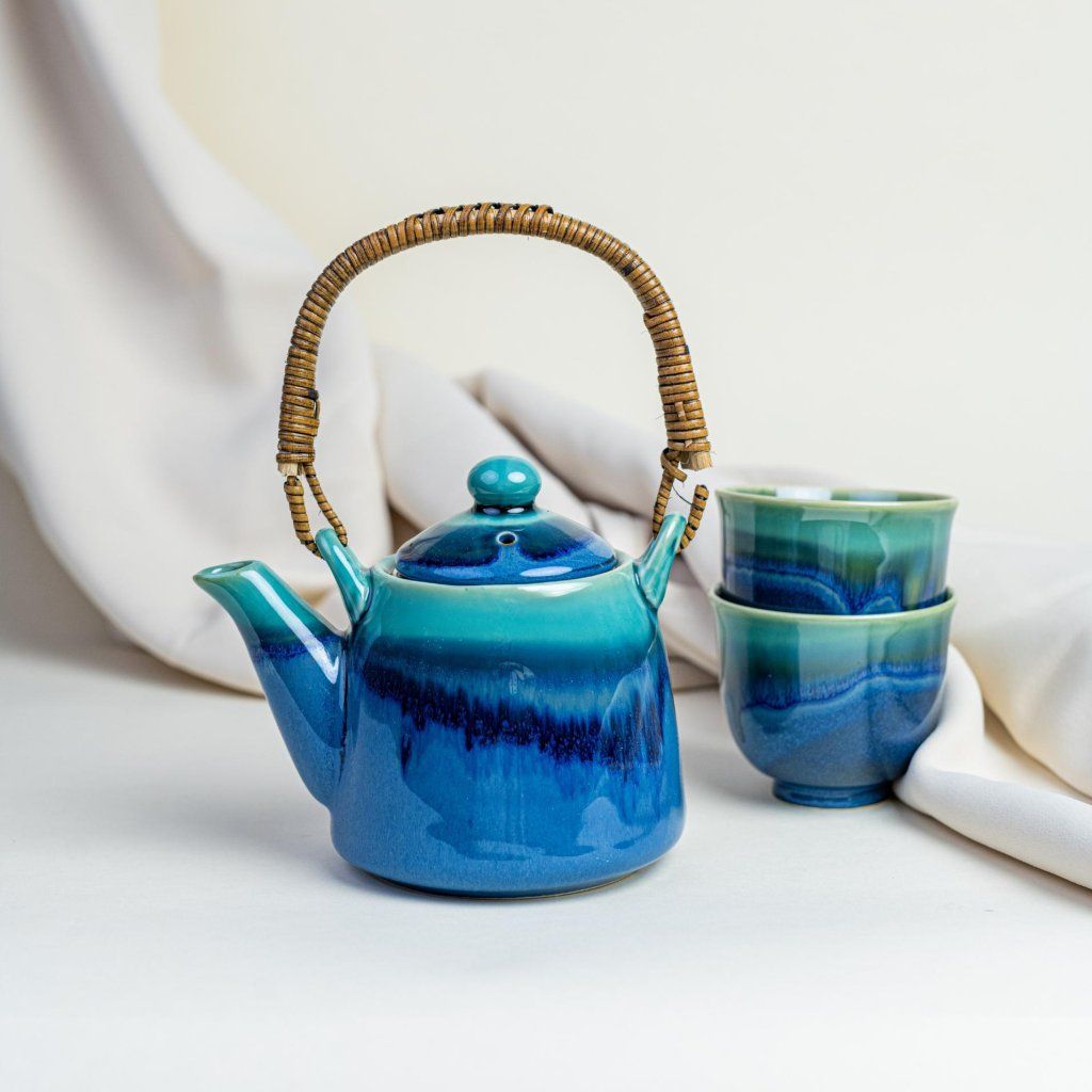 - Set de ceai BLACK COBALT TEAL se remarcă prin glazura sa distinctă albastru-turcoaz și designul tradițional japonez, care transformă fiecare servire de ceai într-un ritual estetic.