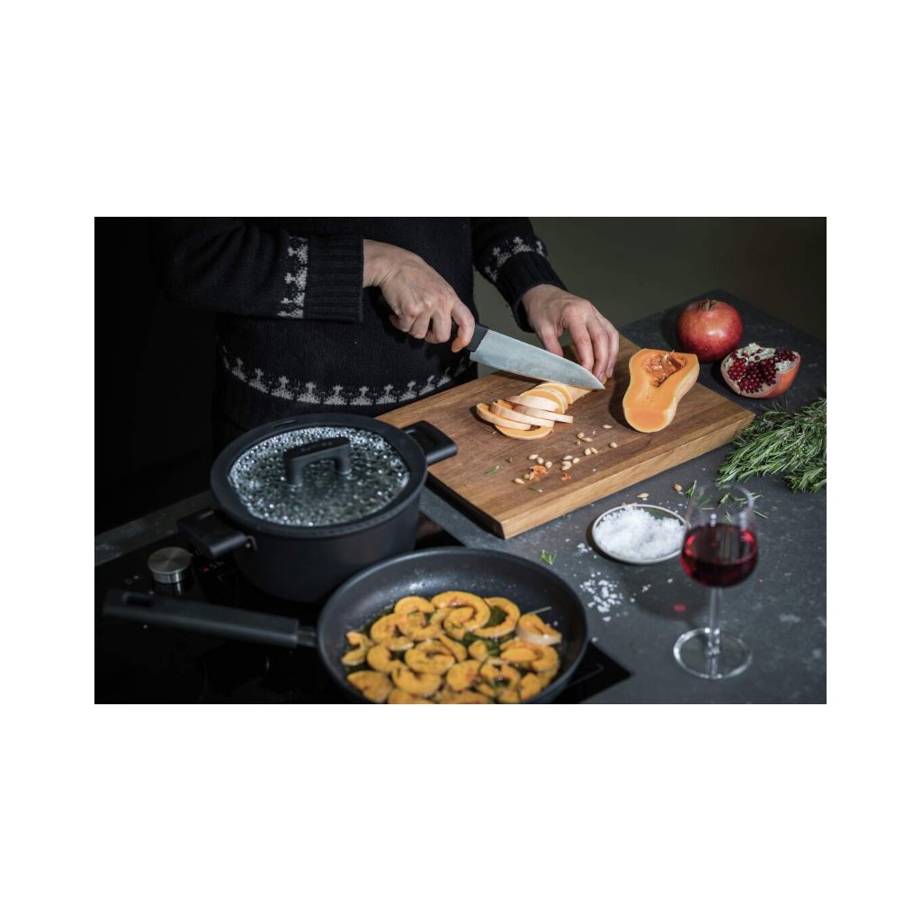 - Cuțitul universal mare de bucătar, cu o lamă lungă de 20 cm, cu o muchie dreaptă și perfect ascuțită, este ideal pentru tăierea bucăților mari de alimente - taie perfect carnea, legumele, dar și verdețurile.