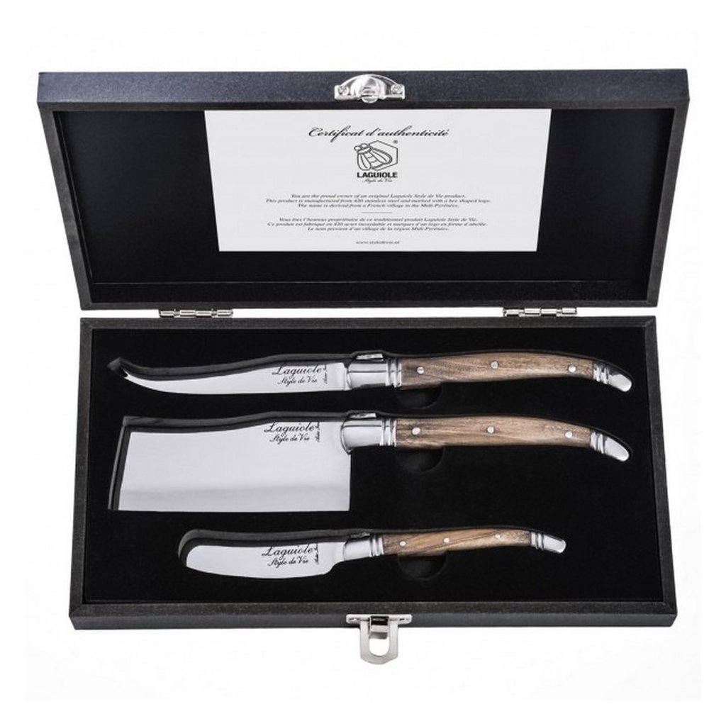 Set cuțite pentru brânză LAGUIOLE LUXURY, 3 buc, set cadou, mânere din lemn de măslin, Laguiole