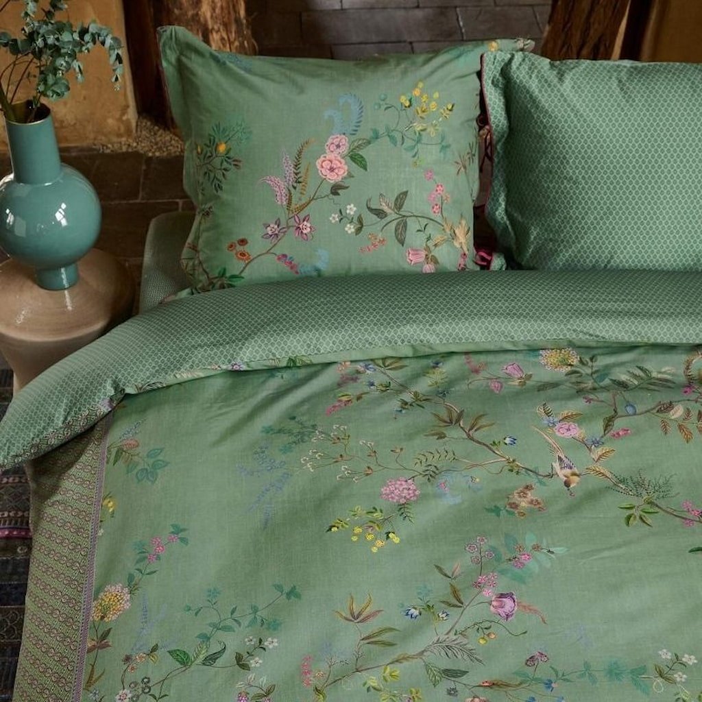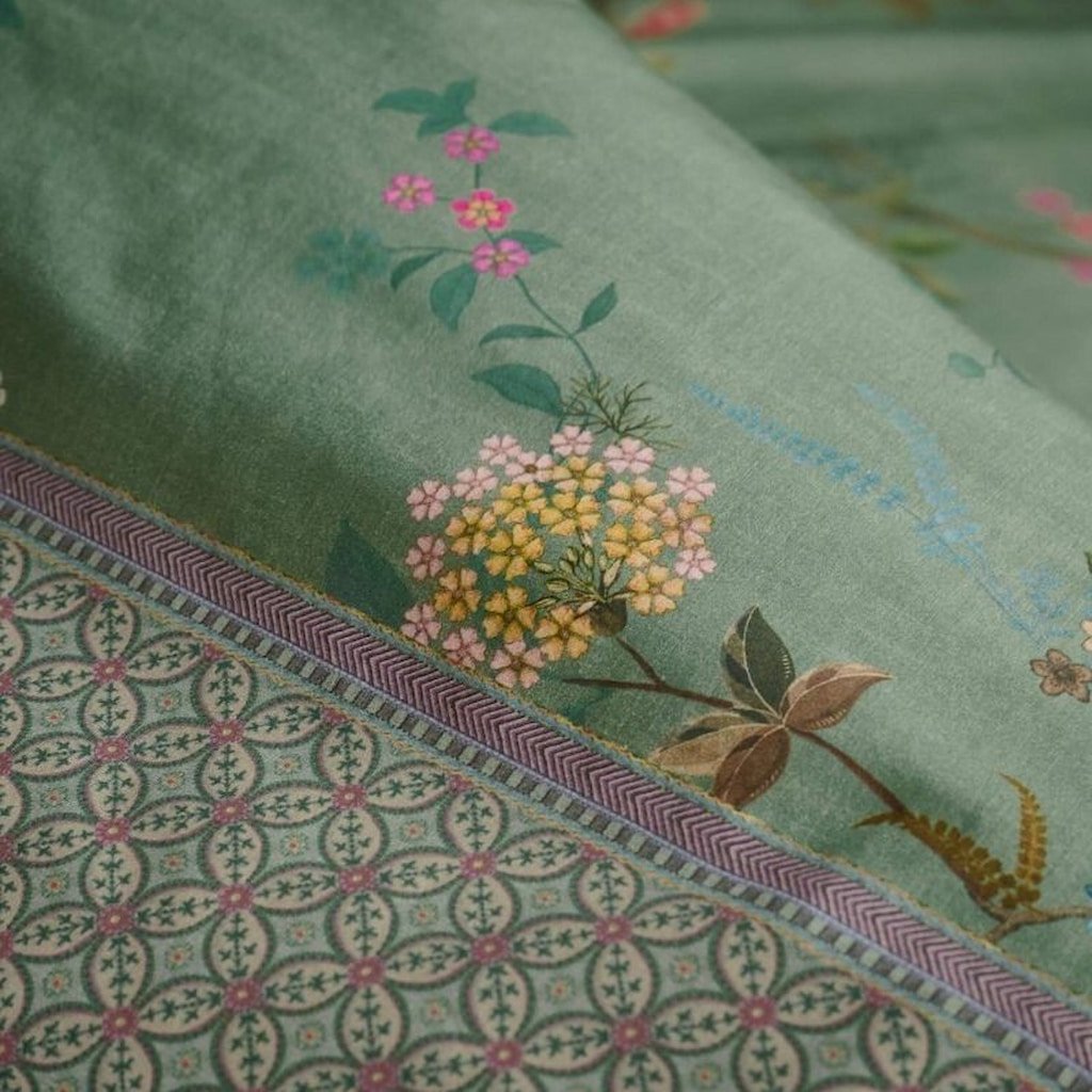 Set de lenjerie de pat single BUSTANI 140 x 200 cm, verde, bumbac percal, Pip Studio