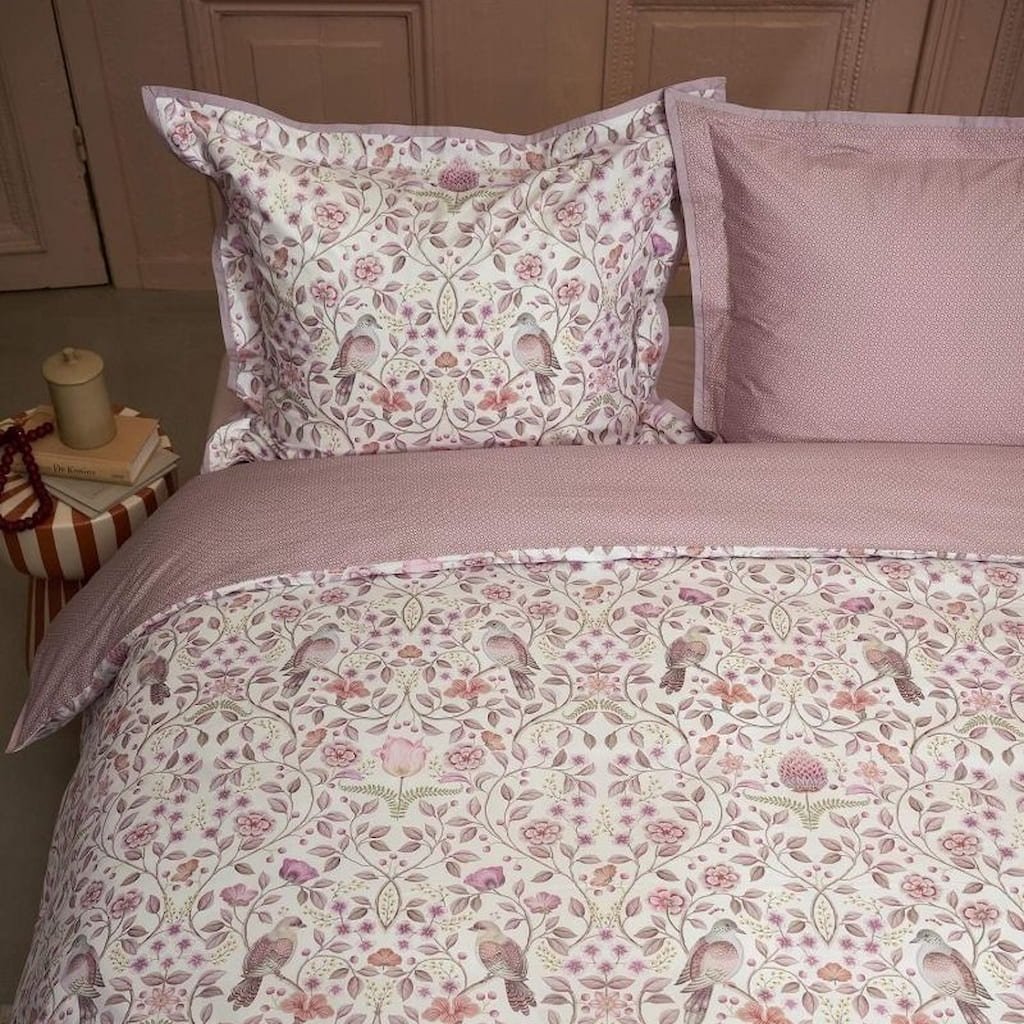 Set de lenjerie de pat single GARDEN OF DOVE 140 x 200 cm, roz, bumbac percală, Pip Studio