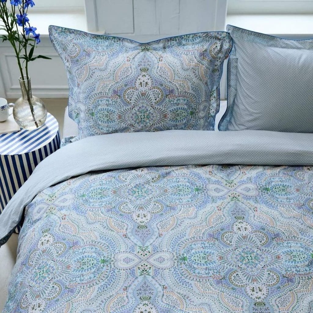 Set de lenjerie de pat single MOON FLOWER 140 x 200 cm, albastru, bumbac percală, Pip Studio