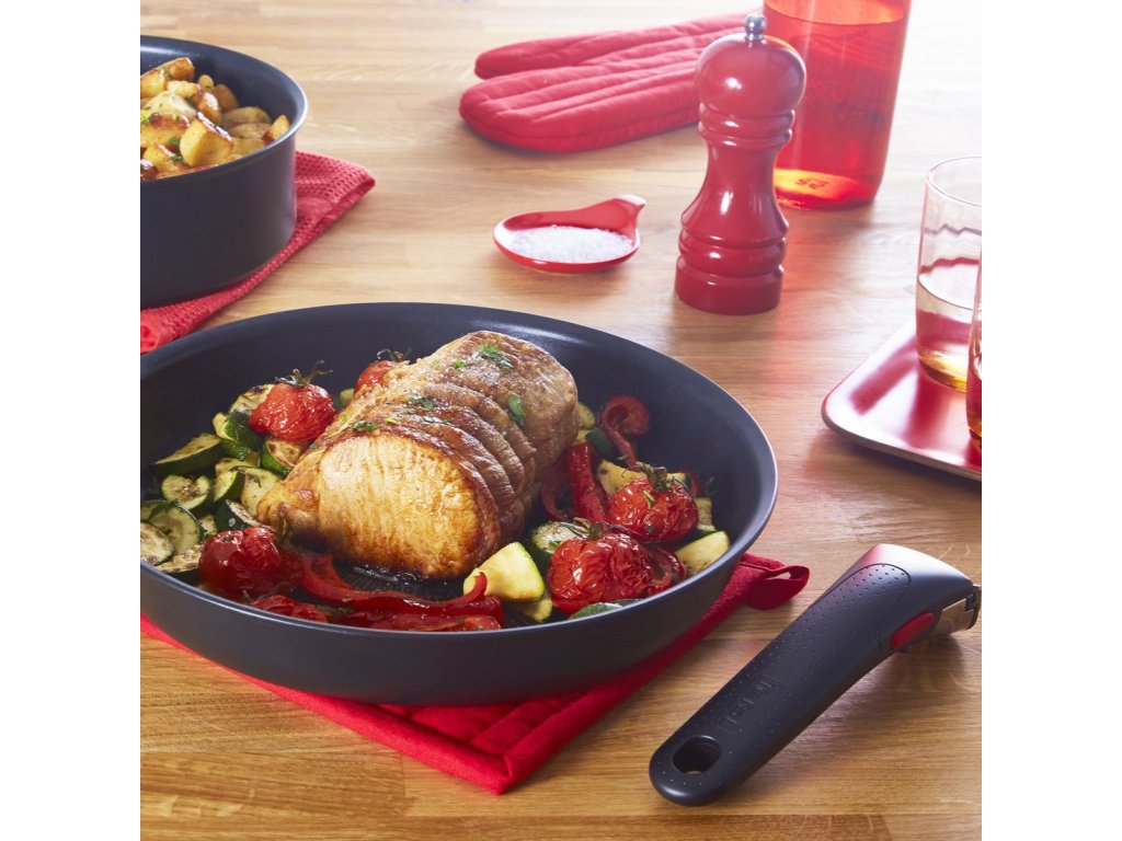 - datorită mânerului detașabil, farfuriile pot fi folosite și direct pentru a fi servite pe masă sau pentru a depozita alimentele în frigider