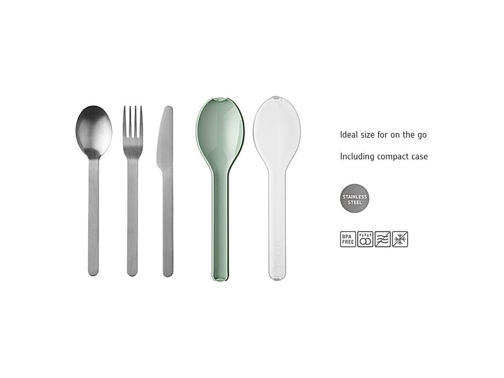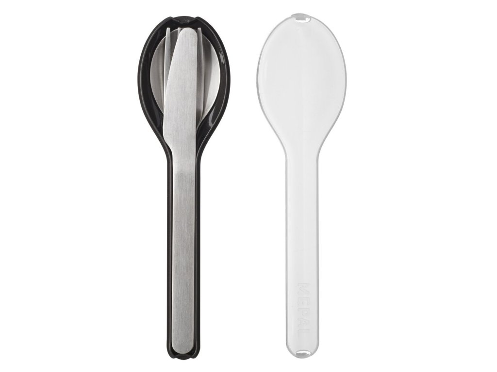 - include cuțit, furculiță și lingură, fiind ideal pentru prânzuri la birou, în excursie sau la școală
