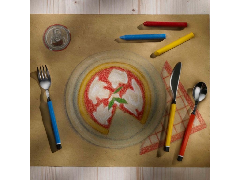 - designul decorului a fost conceput de Elvis Borghetti și pune accentul atât pe spiritul ludic, cât și pe caracterul practic pentru mesele mici