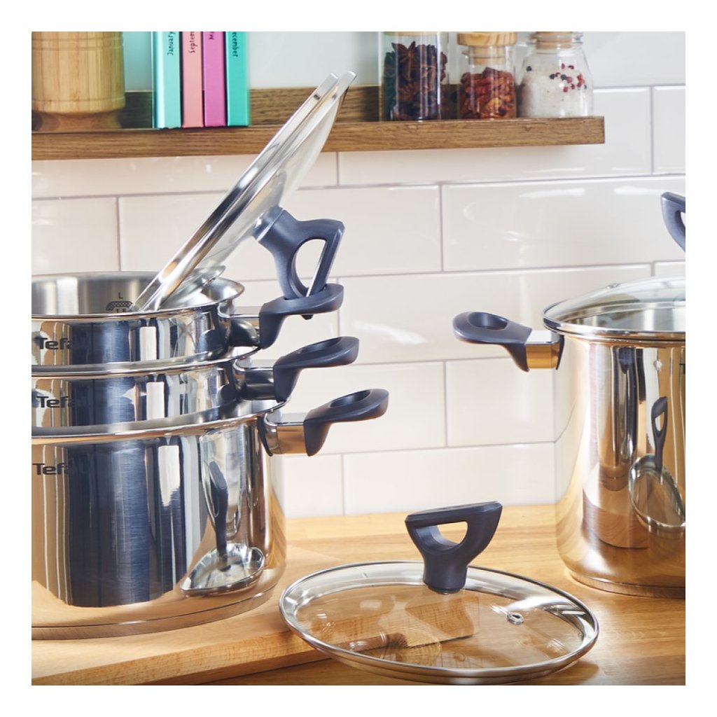 Set de vase pentru gătit DAILY COOK G712SA55, set de 10, argintiu, oțel inoxidabil, Tefal