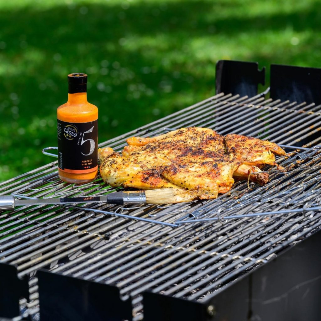 - Baza rețetei este ardeiul iute african, care asigură o arsură plăcută și un gust intens.