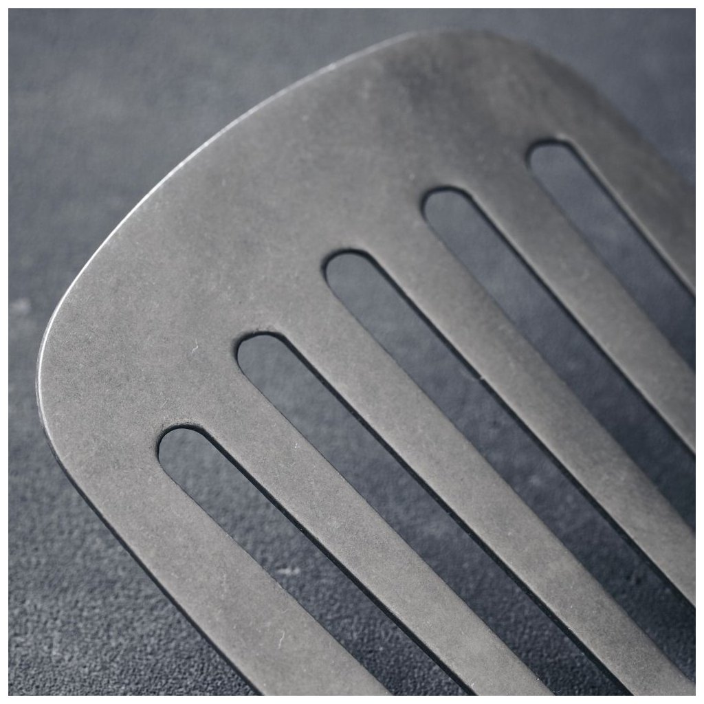 - alunecă cu ușurință sub carnea, ouăle și peștele de pe tigaie, scurgând grăsimea