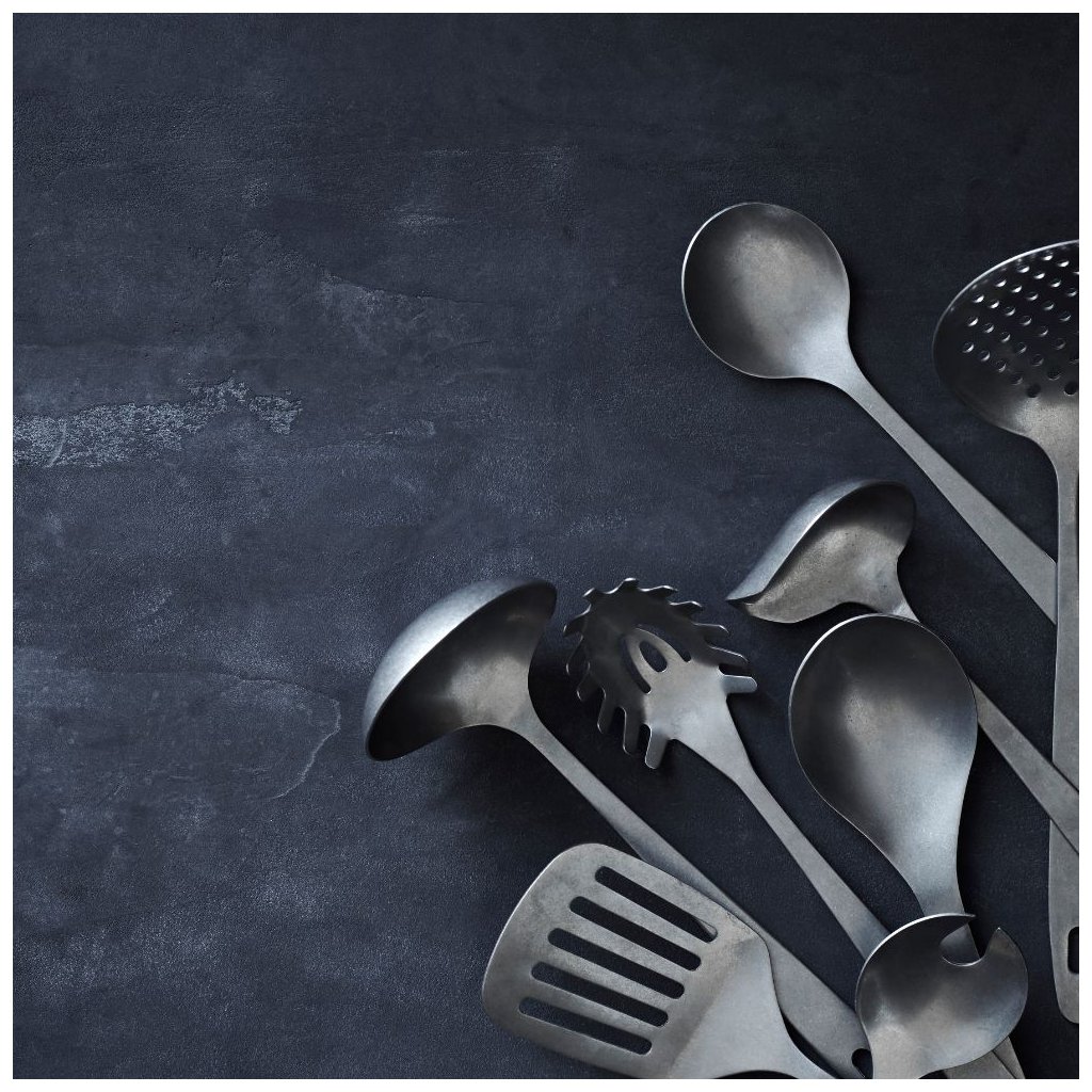 - datorită găurii din mâner, poate fi ținut pe un suport de ustensile suspendat pentru un aranjament de bucătărie în stil industrial
