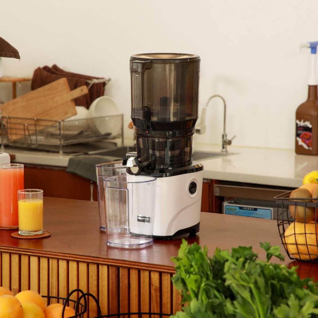 - Rezervorul automat mare vă permite să încărcați toate alimentele deodată, astfel încât prepararea sucului să fie confortabilă chiar și în timpul rutinelor matinale aglomerate.